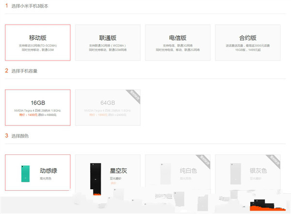This version of the Mi 3 will be the China Mobile (16GB) edition which uses the Nvidia Tegra 4 processor. It sports a 5-inch 1080p screen and a 2mp/13mp camera. It has 2GB RAM and a 3050mAh battery.