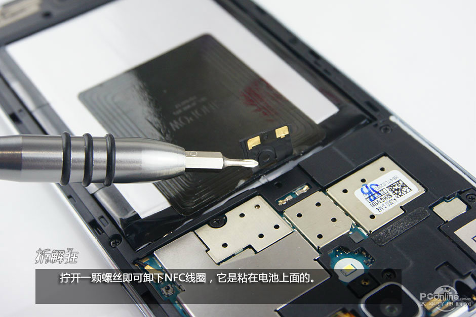 Here’s the NFC wire wrapped in a coil glued above the battery.