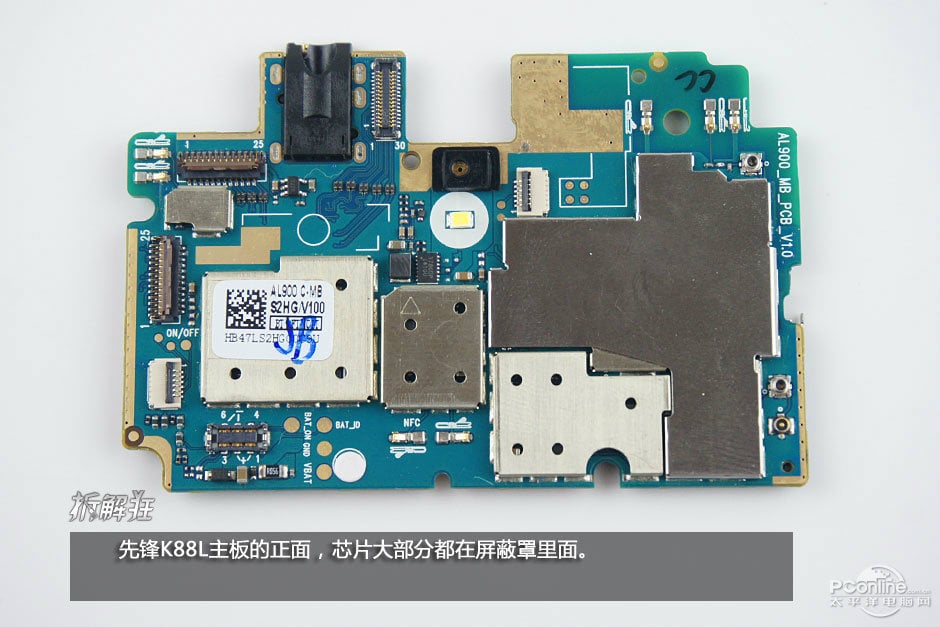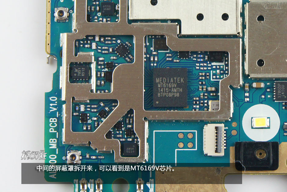 After taking off the shielding case, you can see the MT6169V chip in the middle.