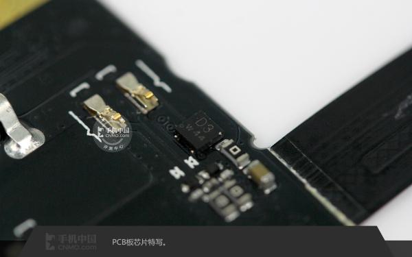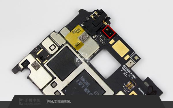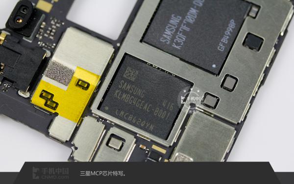 Two pieces of Sumsang MCP chipset on the surface, Snapdragon 801 quad-core processor is underneath of the bigger MCP chip.