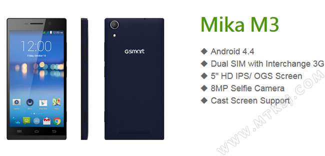 The GSMART Mika M3 phone has a 5-inch 720p OGS display screen. As stated earlier, this phone uses a processor from MTK. Specifically, it uses the 1.3GHz MTK MT6582 quad-core CPU. It also has 1GB RAM and 8GB ROM, which can be expanded up to 32GB. It also has powerful camera specs, sporting an 8mp front-facing camera and 13mp rear facing camera. Its operating system is the Android 4.4.
