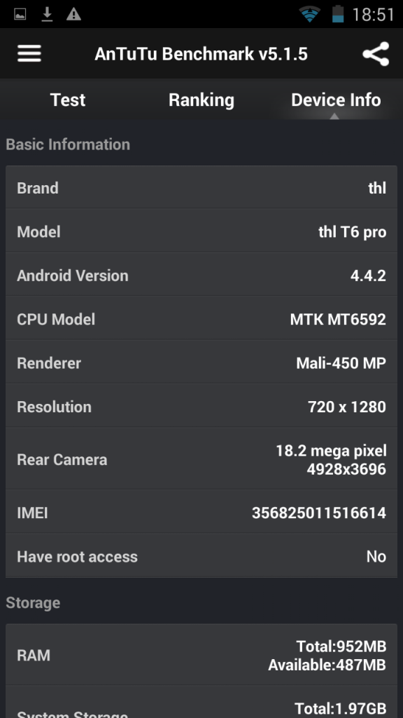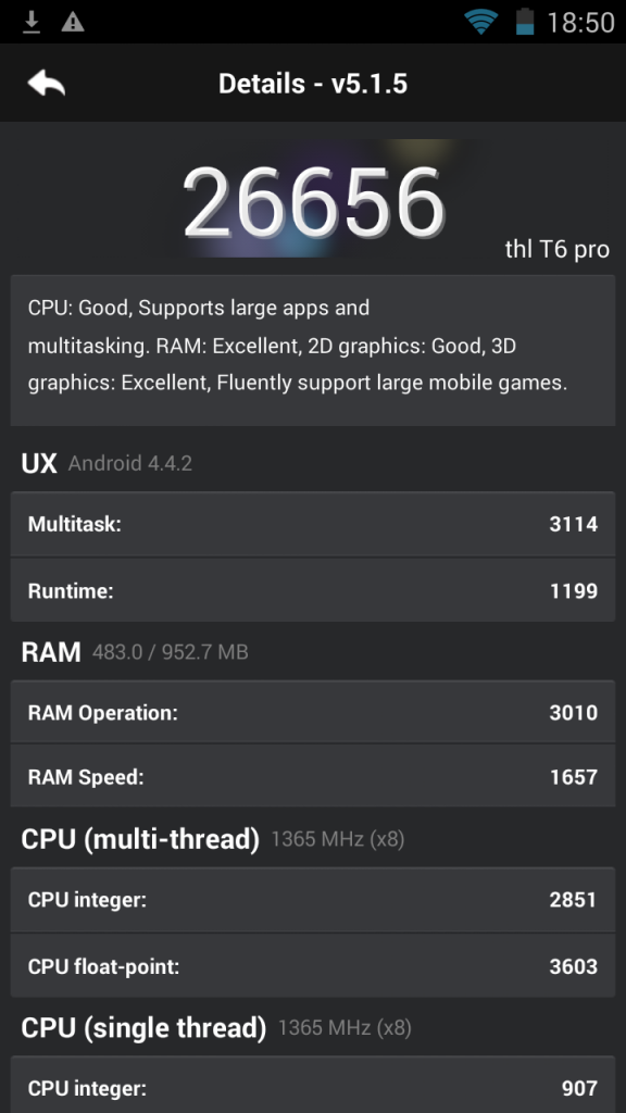 The following are the results for the THL T6 Pro in the Antutu Benchmark test as well as all of its specifications.
