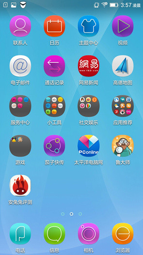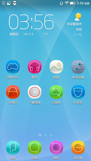 All the apps are located in the main page. The flat icons and the use of many colors make the design of this OS look more appealing for younger users.