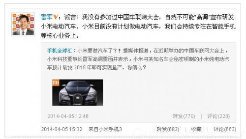 3: Back on 5 April 2014, Xiaomi’s CEO Leijun has outrightly said that Xiaomi has no plans to make electric cars right now. And to produce a car takes time, it’s impossible to make a team for cars and start producing in several months without letting people know.