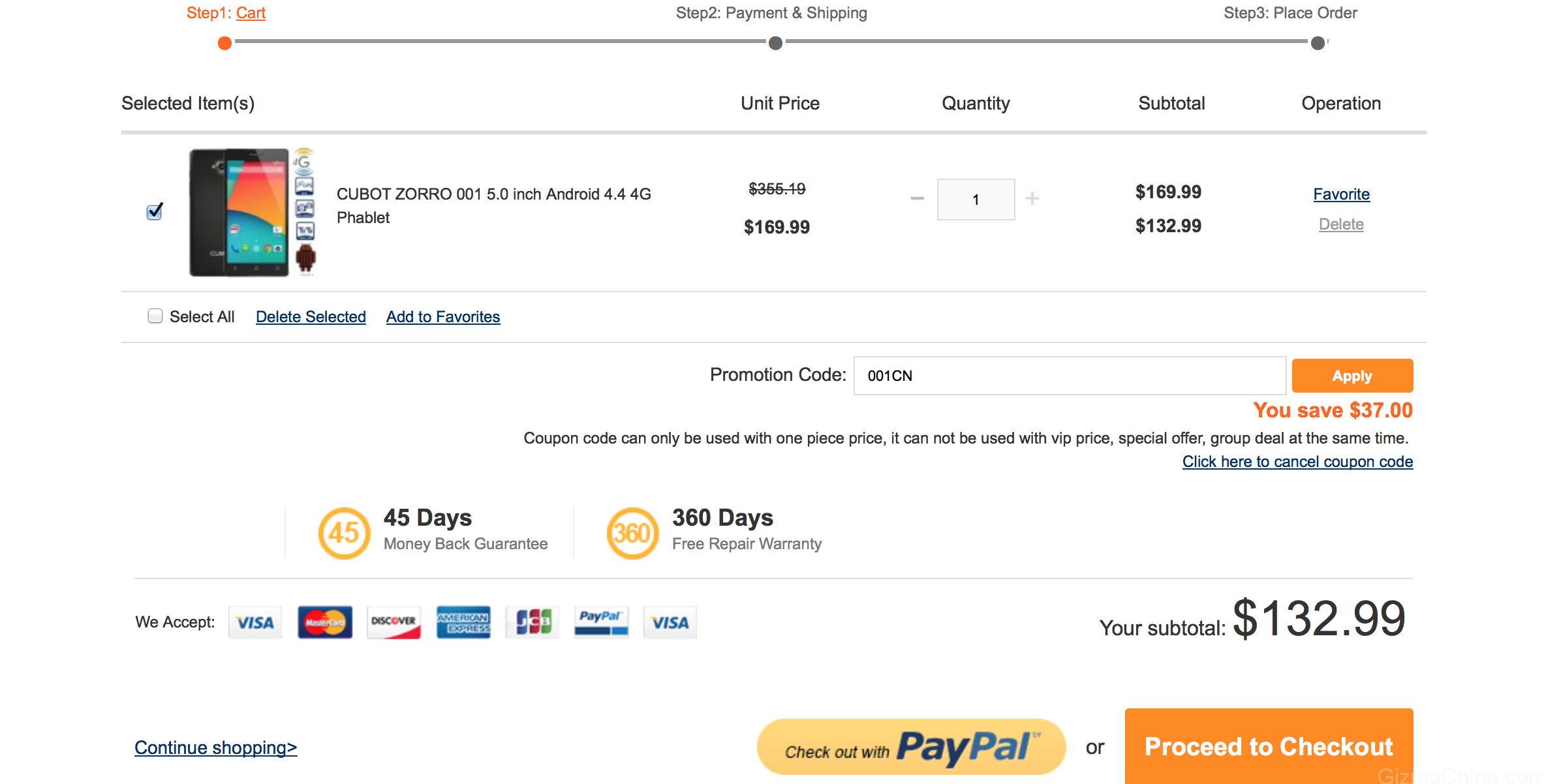With the price of $169.99 it looks to be a great offer. But what is more important, you can get CUBOT ZORRO 001 for as low as $132.99 from Gearbest using the following link.