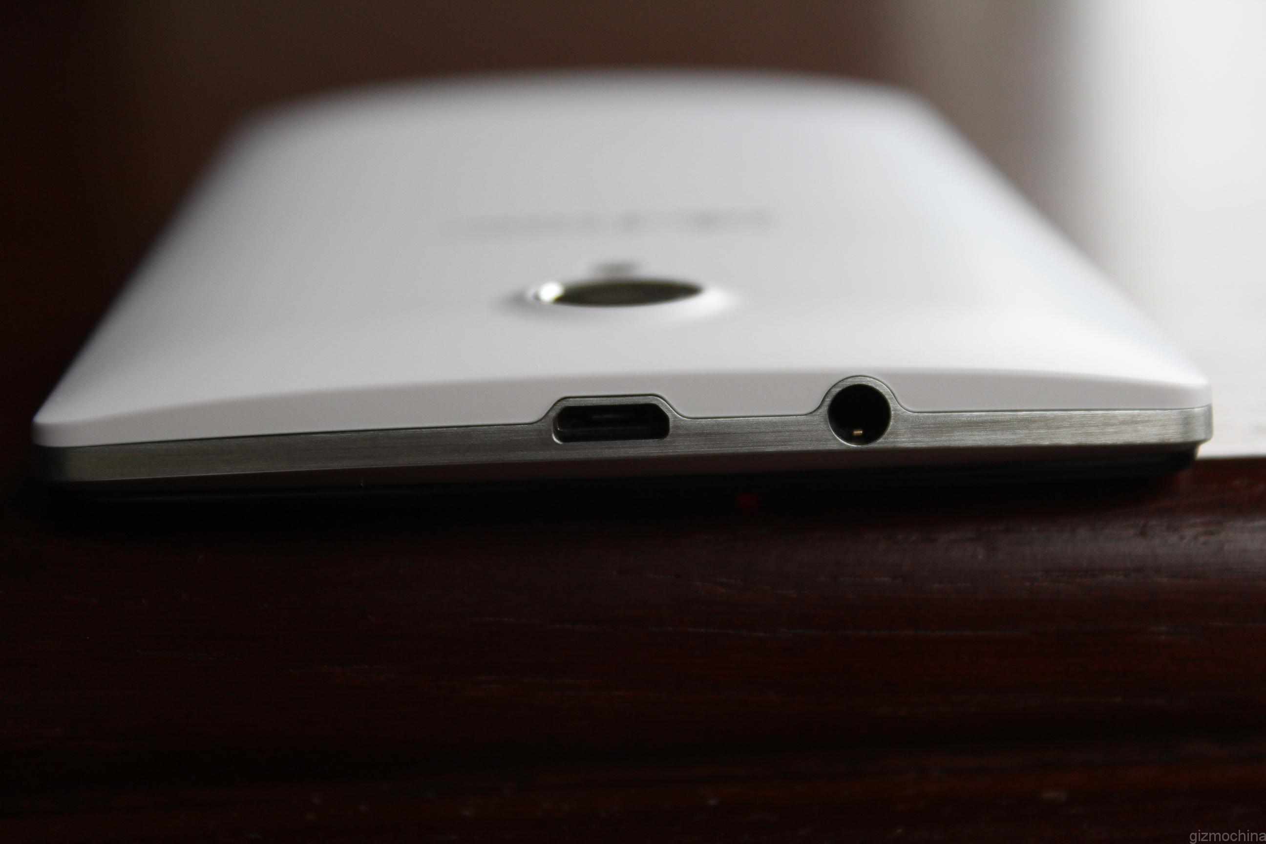 The top side spots a 3.5 mm headphone jack along with the Micro USB charging port. I don’t think that putting the charging port on the top is the best solution, but it’s not a deal breaker.