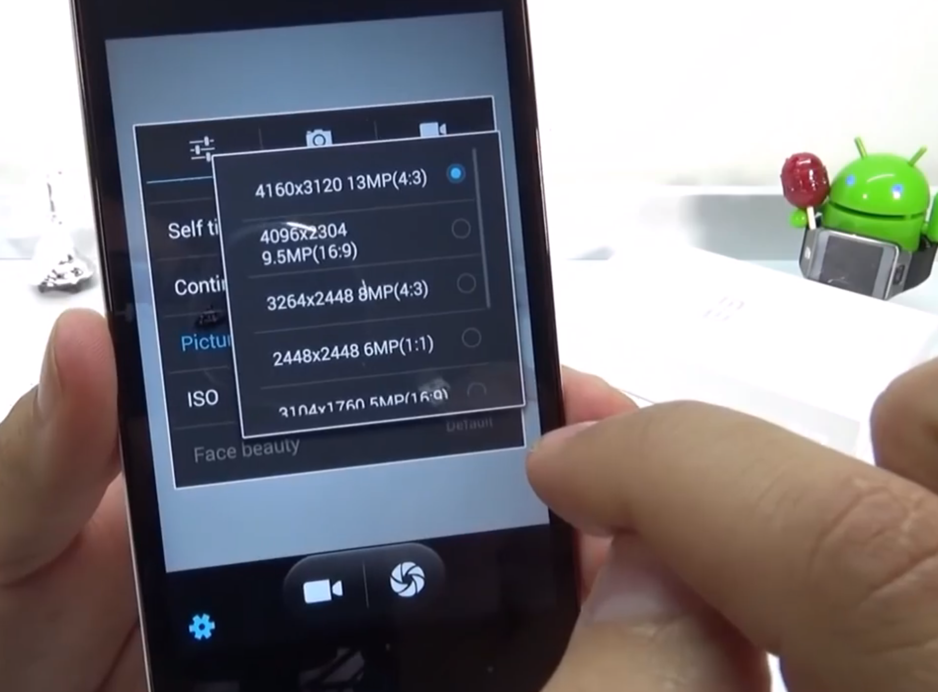 The device packs a 13mp camera. We are not aware of the sensor make, but we presume that it may be Sony IMX214. The camera interface is pretty simple. You can choose from a variety of options, which include standard, landscape, sports, panorama modes. Also, there are some settings like changing the resolution, self timer, ISO sensitivity, continuous auto-focus etc. All in all, the interface is simple and fast.