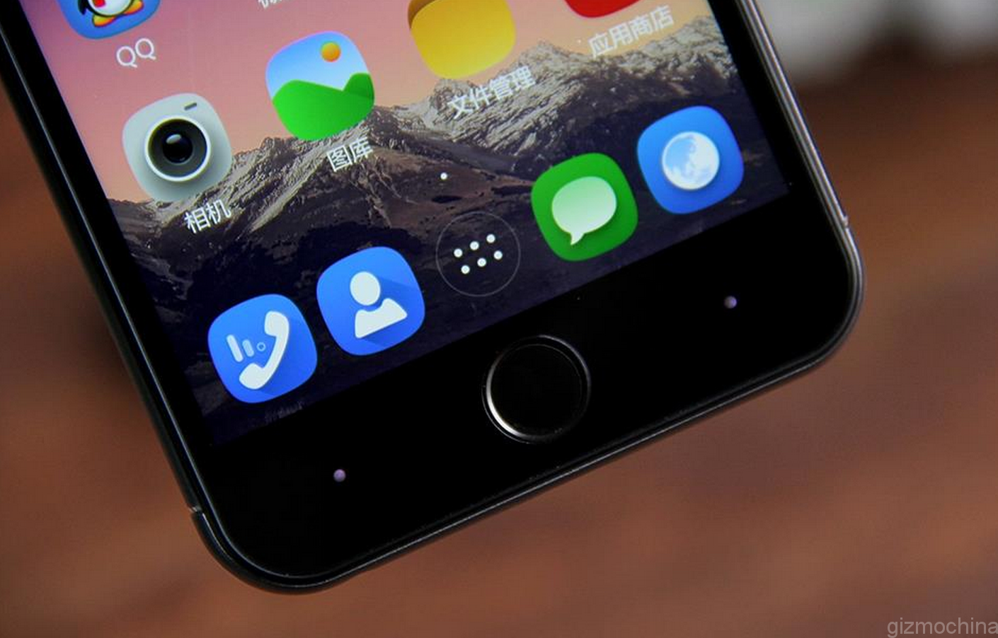 The device (bottom device) spots the same home button design. However, it only takes you home as there is no fingerprint scanner inside.