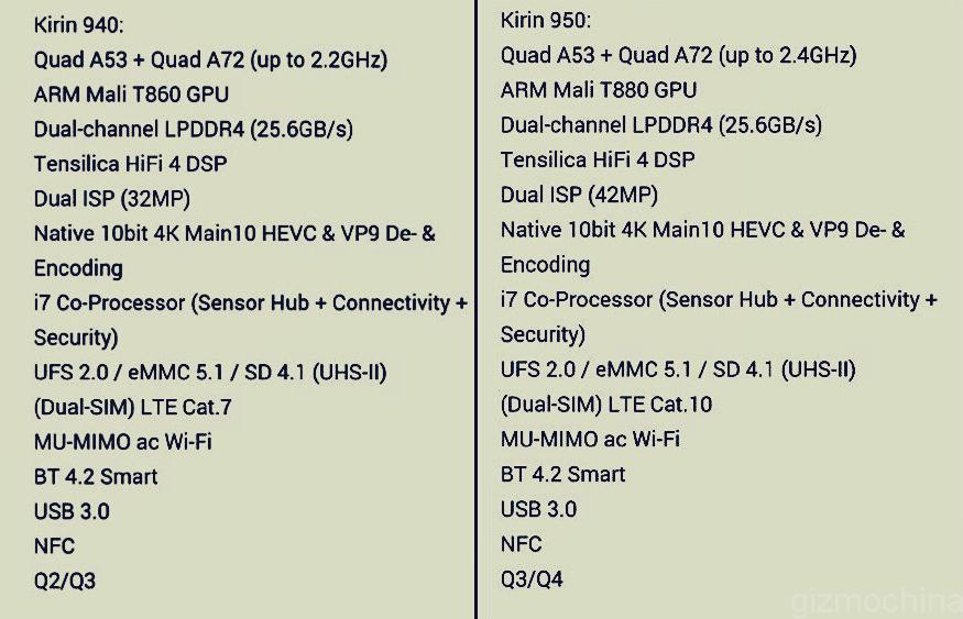 Huawei HiSilicon Kirin 940/950 OctaCore processors will both be equipped A72 with ARMv8 64-bit cores. Using the new 16 nm technology, the processors are said to be as much as 3.5 times faster than the Cortex-A15 and have almost doubled speed compared to the A57 architecture. Furthermore, the new A72 architecture will reduce power consumption with as much as 75 percent.