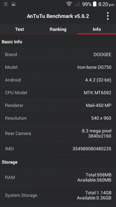 The device is running Android 4.4.2 Kitkat out of the box. The UI looks to be pretty simple with just some Doogee icons and runs smoothly. In general, it is very close to the stock Android experience.