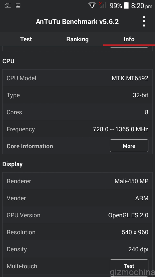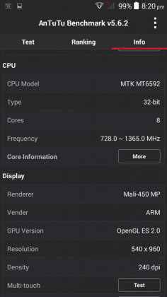 | Processor | MTK6592, Cortex-A7 Octa core,1.7GHz (32-bit) |
