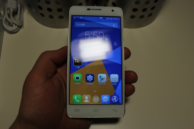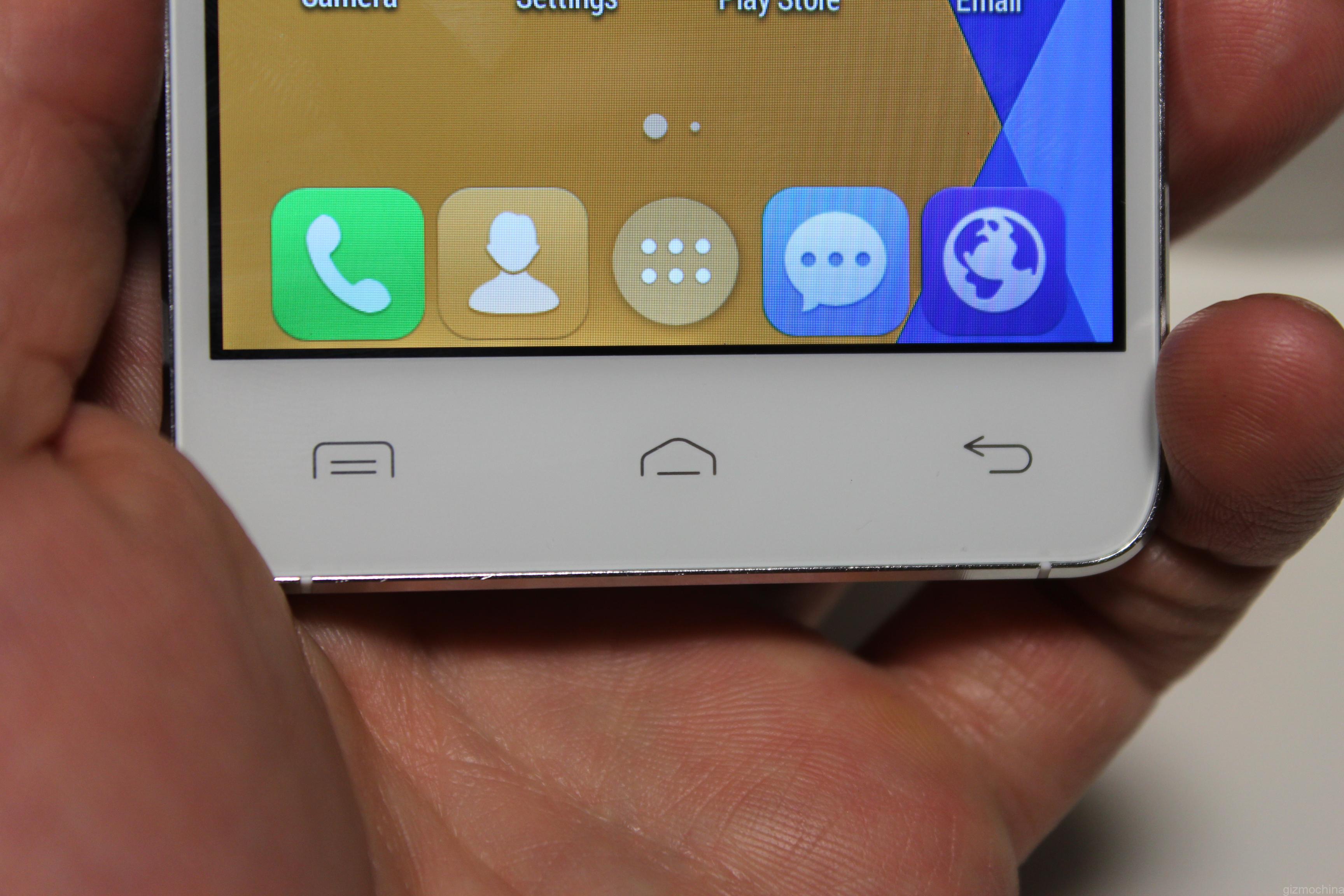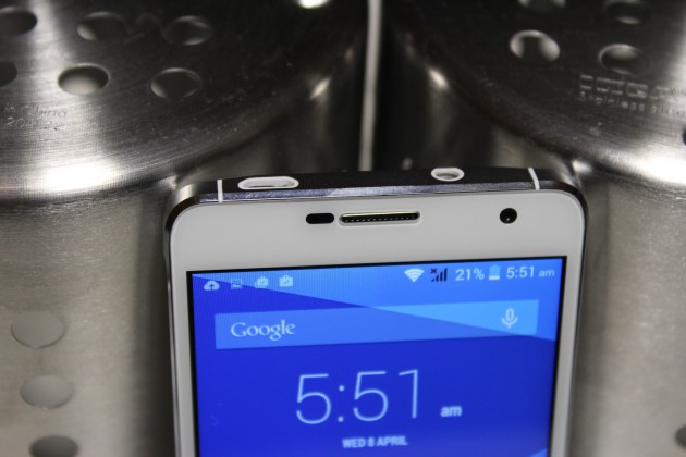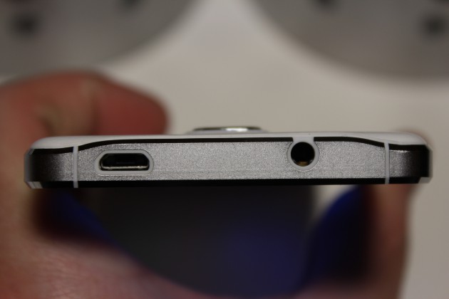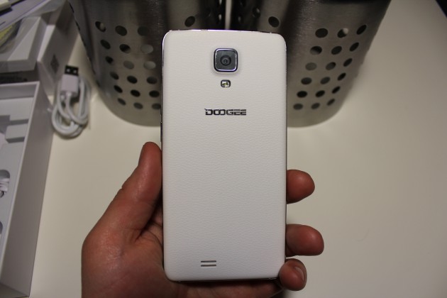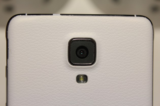 If you flip the device to the back, you may find a familiar textured plastic finish. It is a copy of Samsung Galaxy Note 3’s white faux leather finish, which is actually a plastic. We actually like it as it gives a comfy grip in your hand. Also, it does not attract fingerprints and smudges like glossy plastic. The cover sits ridiculously tight, so you don’t want to take it off very often unless you want to break your nails.