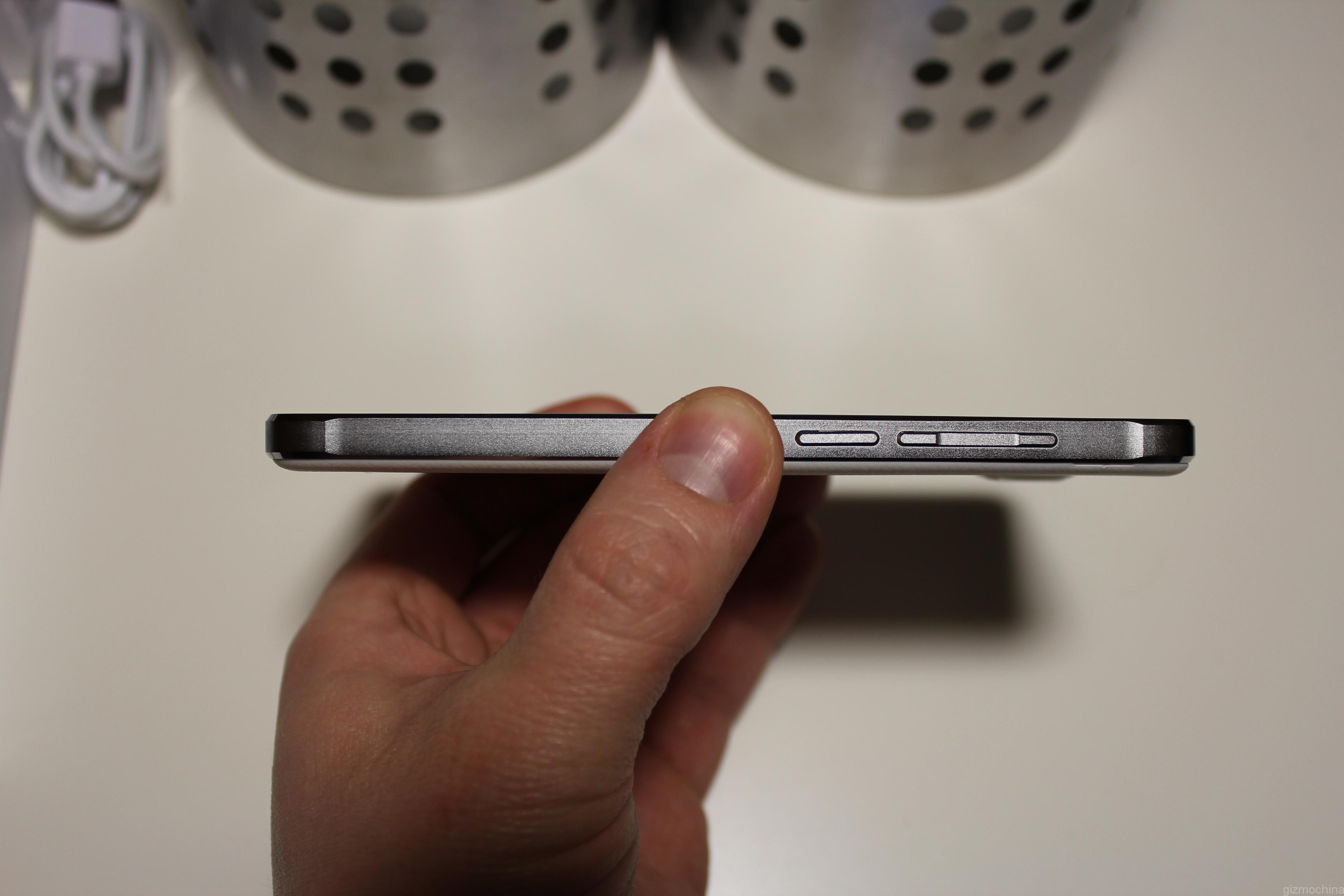 The device has the 5mp snapper on the front along with the 3 capacitive keys on the bottom. They are not backlit, however. Taking a look at the right, you will find a metal volume rocker and power on/off key. On the top of the device there is a micro USB port and a headphone jack.