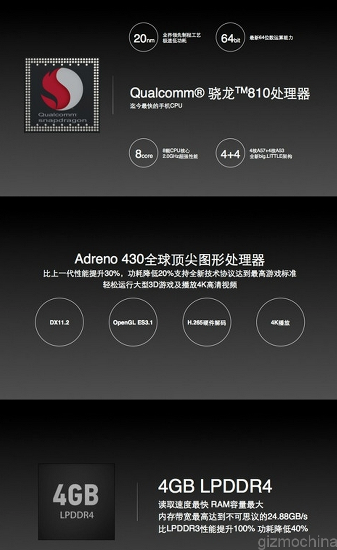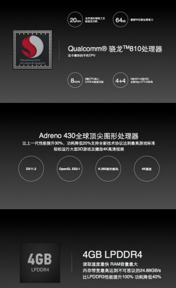 | Processor and GPU | 64-bit Qualcomm Snapdragon 810 |