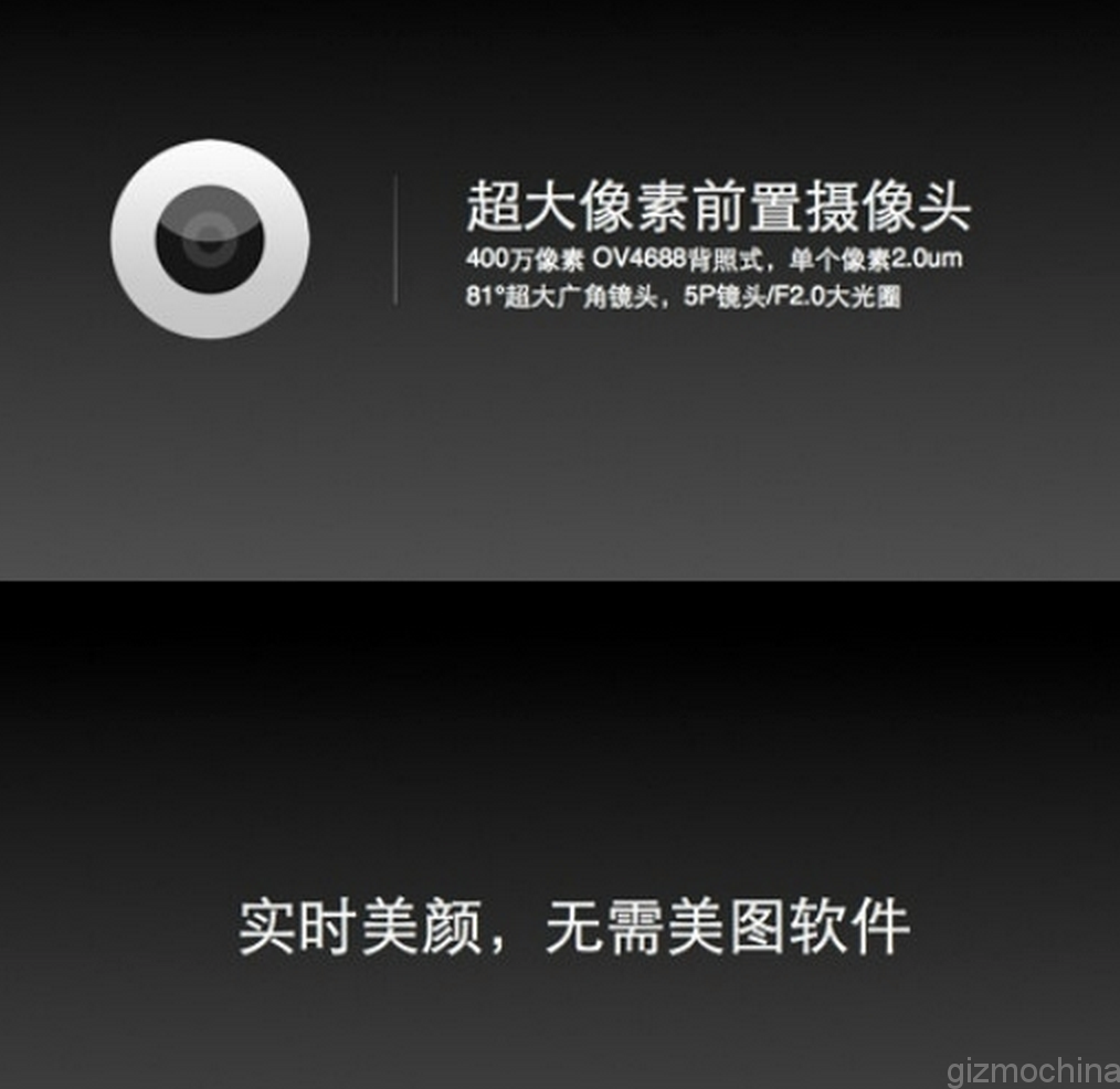 It uses OV4688 4mp front camera with a large F/2.0 aperture and 2.0um pixels, 81 degrees super wide angle 5P lens. On the back there is Sony’s 13MP sensor with optical image stabilisation and dual tone dual LEDs.
