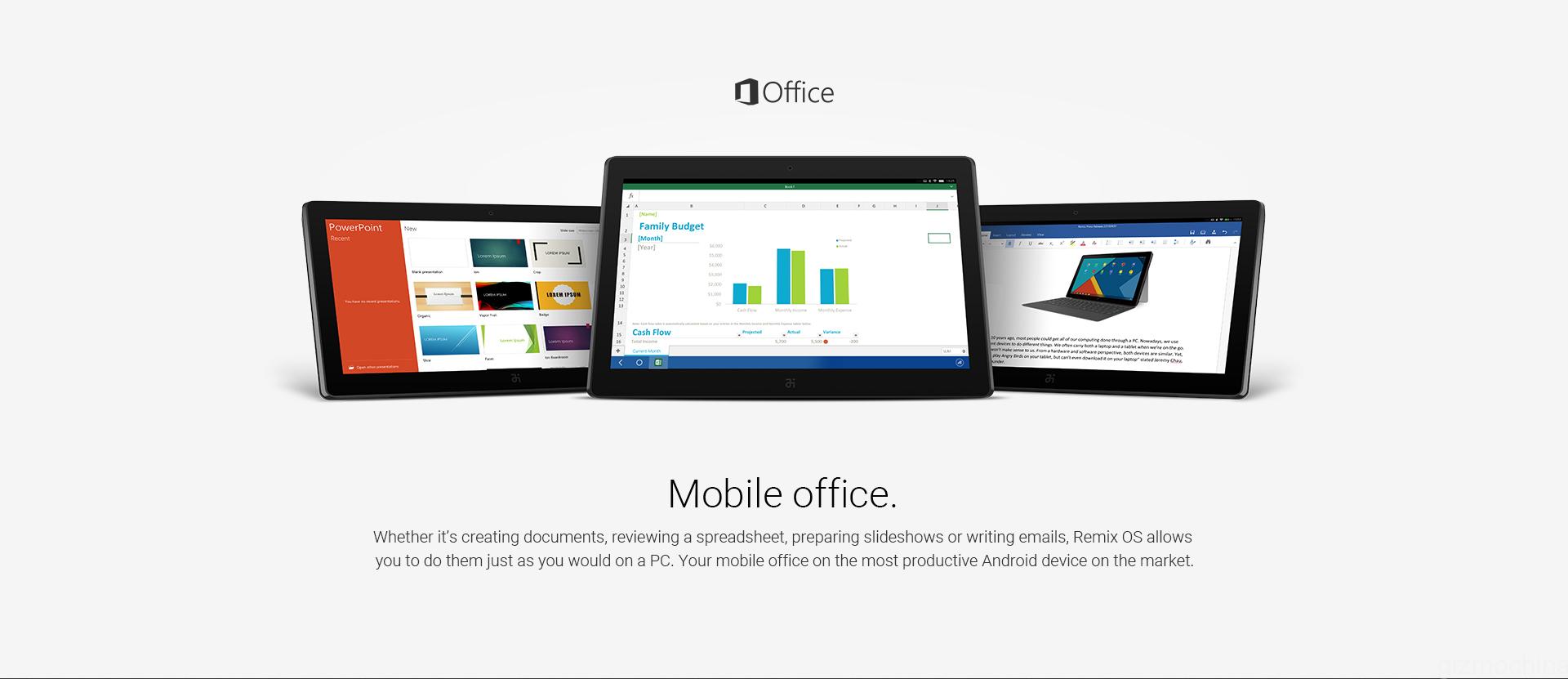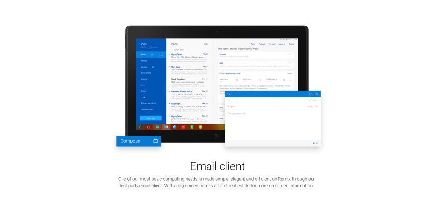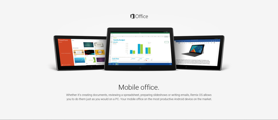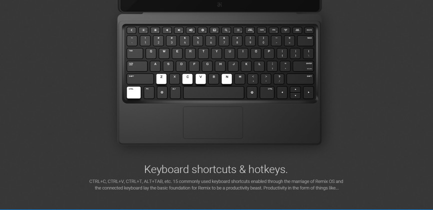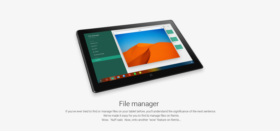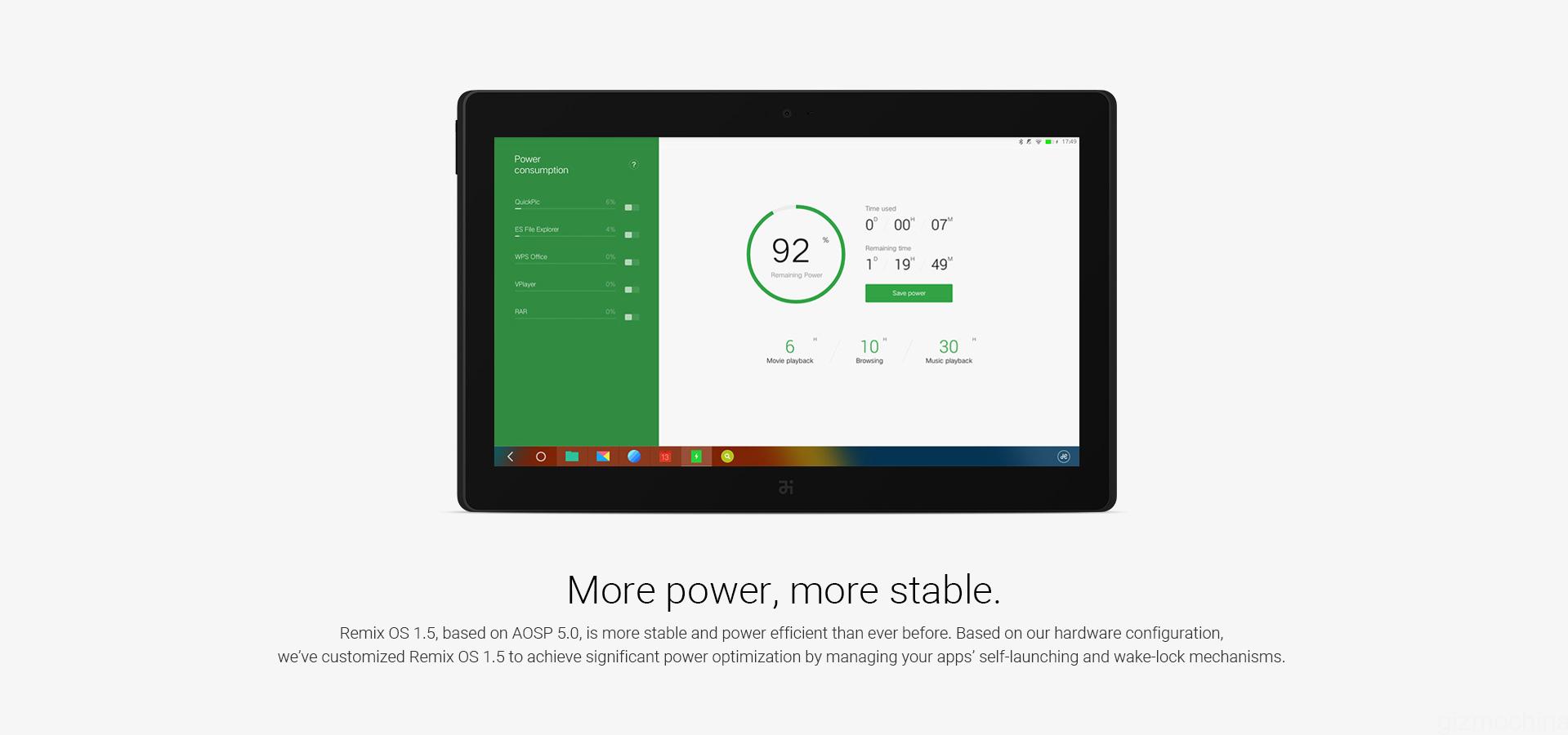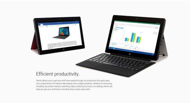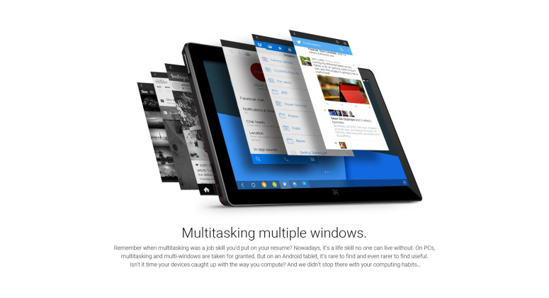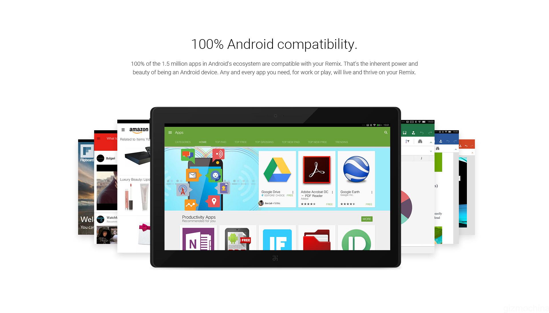 The device comes with the Remix OS, which is build on Android 4.4.2 (Lolipop upgrade is coming soon). This OS is oriented towards productivity tasks, but can handle all the possible Android apps as well.