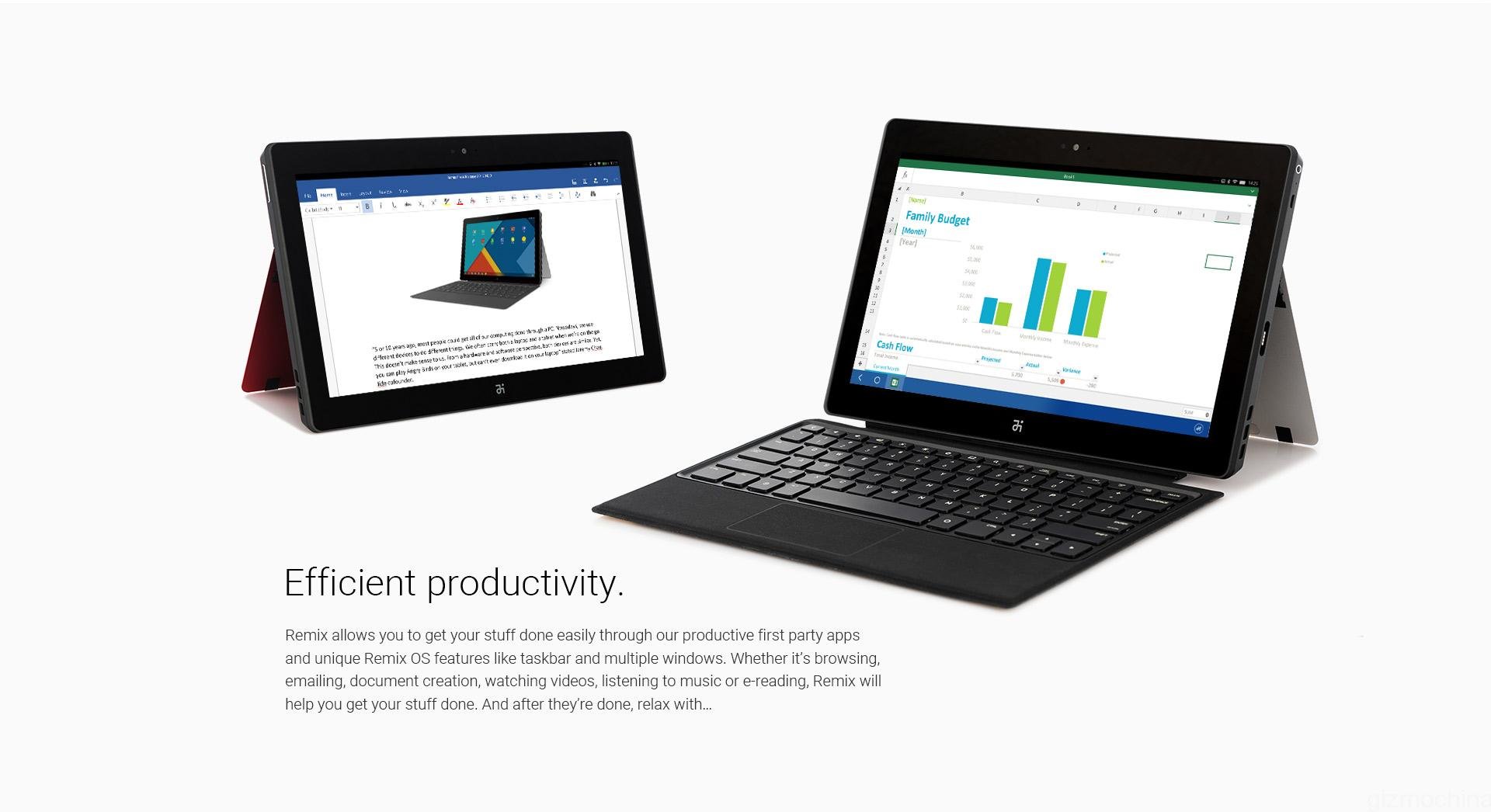 Moreover, there is a dual-angle kickstand, which teamed up with the keyboard and the proprietary Remix OS makes it a productivity oriented tablet/ultrabook.