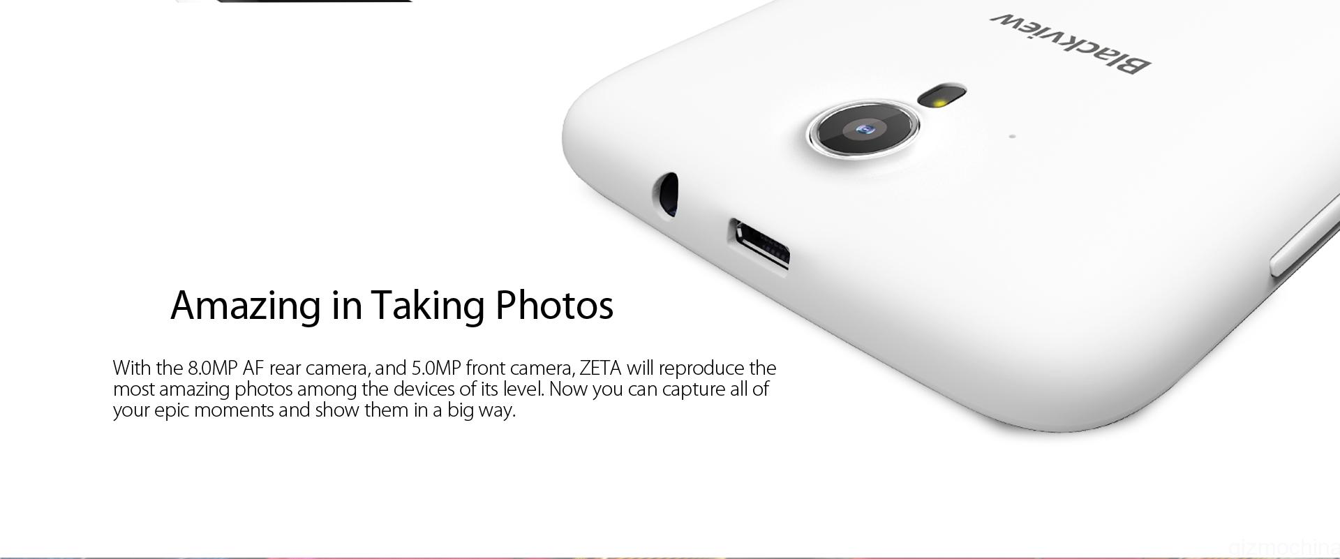 As for the camera, you get an 8MP shooter at the back with ZETA true LED flash and a 5MP shooter up front, good enough for your selfies. The phone comes with a 2050mAh battery and features a number of gesture functions like double tap to lock. It will run on the Android 4.4 KitKat OS. The phone supports dual SIM dual standby (one standard SIM and one Micro SIM). The Blackview Zeta is available in five different bright colors such as Apple Green, Lemon Yellow, Pacific Dark Blue, Pearl White and Peal Pink.