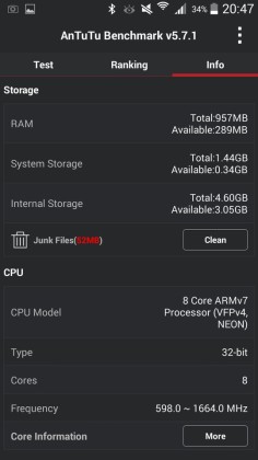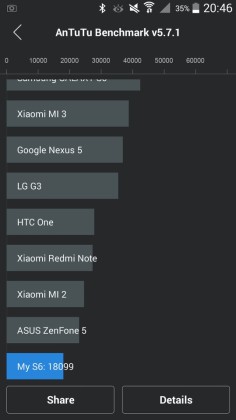 The Antutu benchmark score of 18099 does not impress at all as it falls into upper low-end devices category.