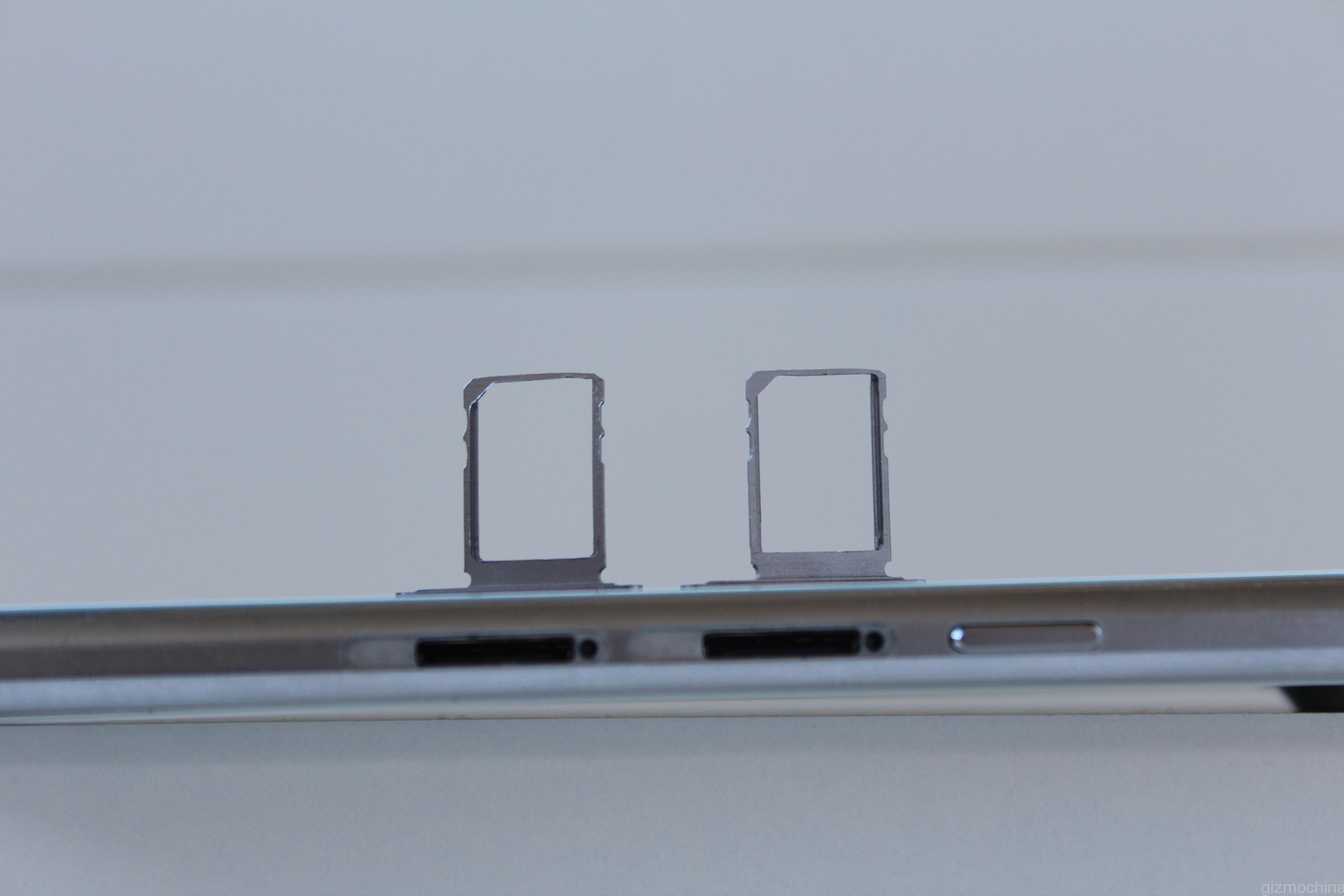 On the right you can find a power on/off switch, which is made out of metal as well. It has a great tactile response, but it wobbling a bit. Also, there are two nano SIM card slots, which can be removed using a supplied tool. Sadly, there is no microSD card slot.