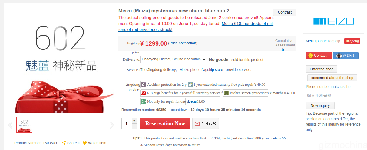 Yes, contrary to earlier rumors which said that the phone will most likely retain the same 999 Yuan price tag as the Meizu M1 Note, it looks like this phone will be priced 300 Yuan more. While JD.com is already accepting registrations for the said device, the phone will start selling only from June 18. The product page for the Blue Charm Note 2 adds that the final price may change after the official announcement on June 2. So we are not yet sure whether the company is launching the device for 1299 Yuan.