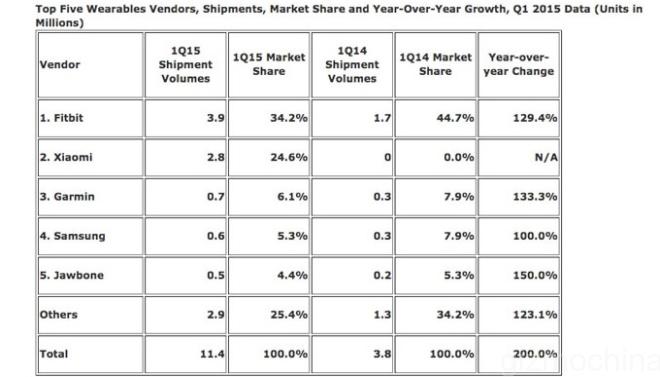 This year, a total of 11.4 million units of wearables were shipped in the first quarter. When you compare the same quarter in 2014, only 3.8 million wearables were shipped in total.