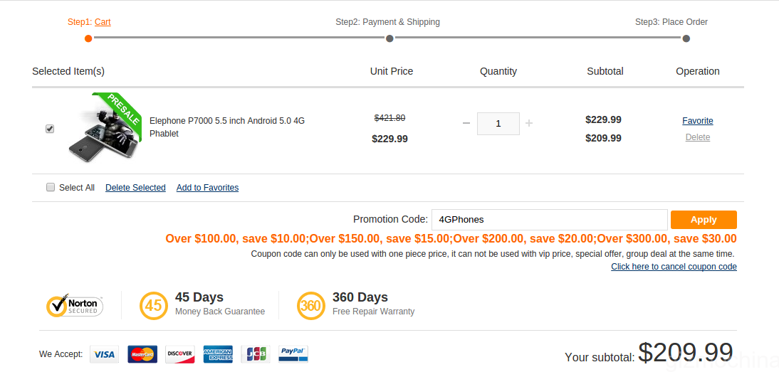 Just use the coupon: 4GPhones and you will get $20 OFF. You can check out more details from the buy now link.