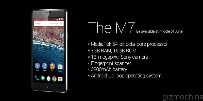 To recap, the M7 comes with a powerful MT6752 octa-core chipset with 3GB RAM and 16GB ROM. There will be a fingerprint sensor on board, along with a massive 5.5-inch full HD panel. For camera, there will be a 13MP rear camera and a 5MP front shooter. Finally, it will feature a large 3800mAh removable battery and will run on Android 5.0.