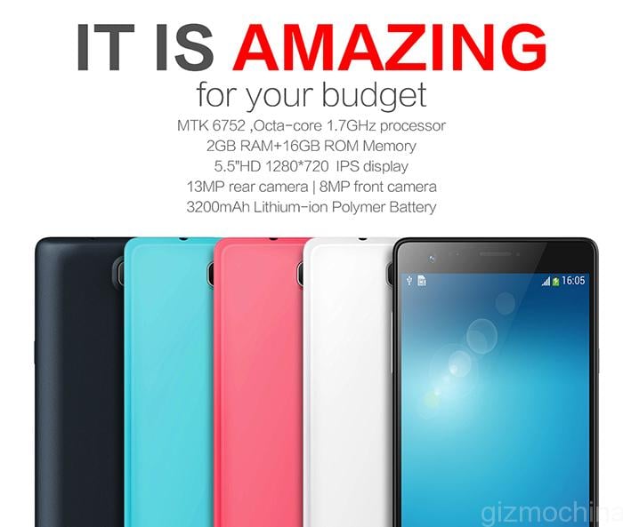 The great things start with a 5.5 inch 720p display, MTK6752 64bit Octa-core chip, 2GB of RAM, 16GB of expandable storage (up to 64GB via microSD card slot), 13MP/8MP cameras on the back and front respectively, 4G connectivity and more. The device comes in a variety of colours, which include white, black, red and blue.