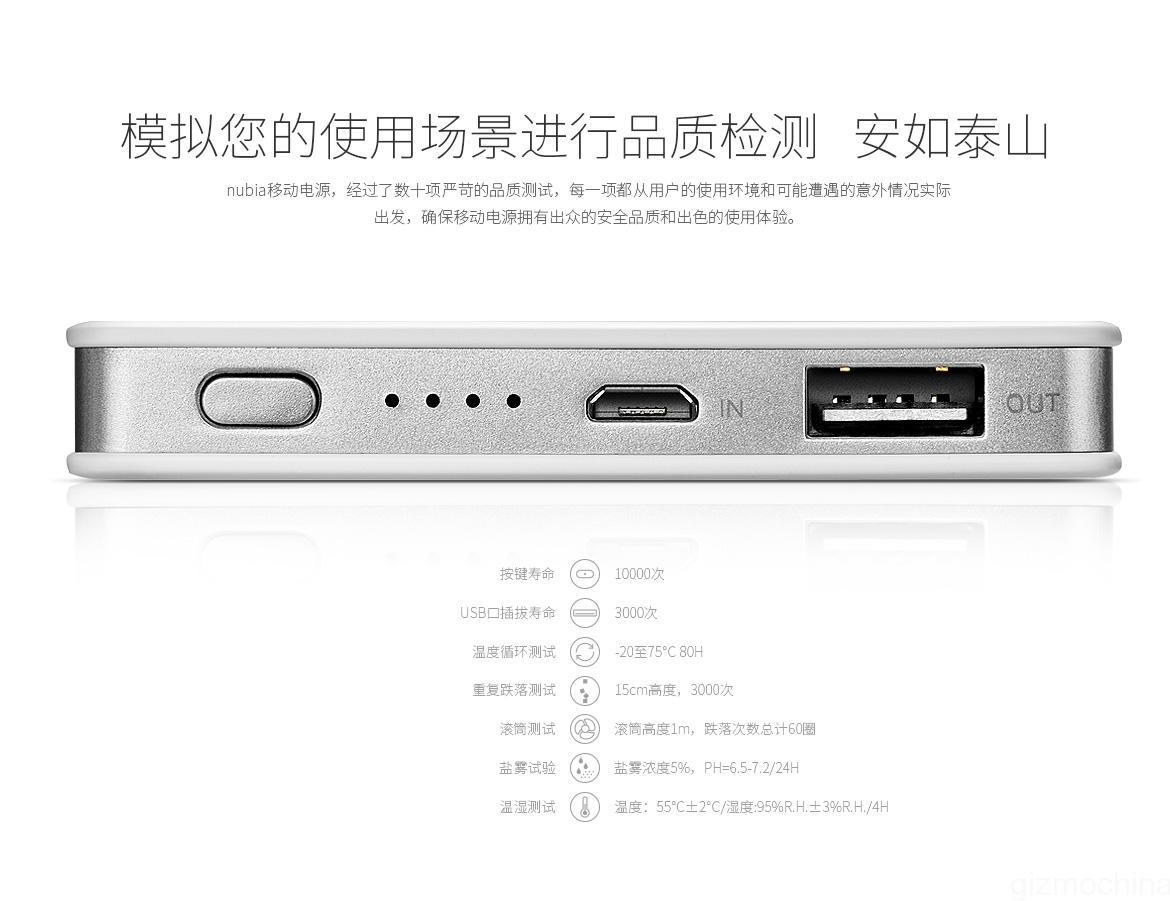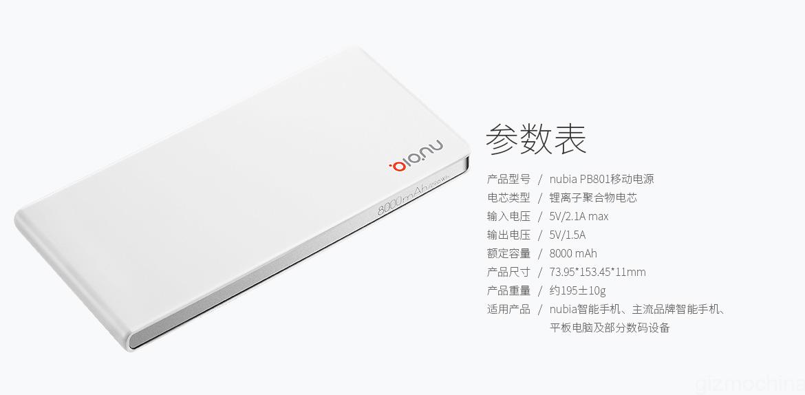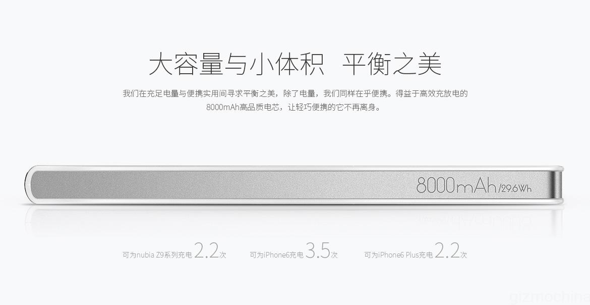The company claims that the 8000mAh power bank is good enough to charge the Nubia Z9 series up to 2.2 times, iPhone 6 Plus also 2.2 times and the iPhone 6 up to 3.5 times. The overall specs looks standard as compared to other power banks from Xiaomi and Meizu.