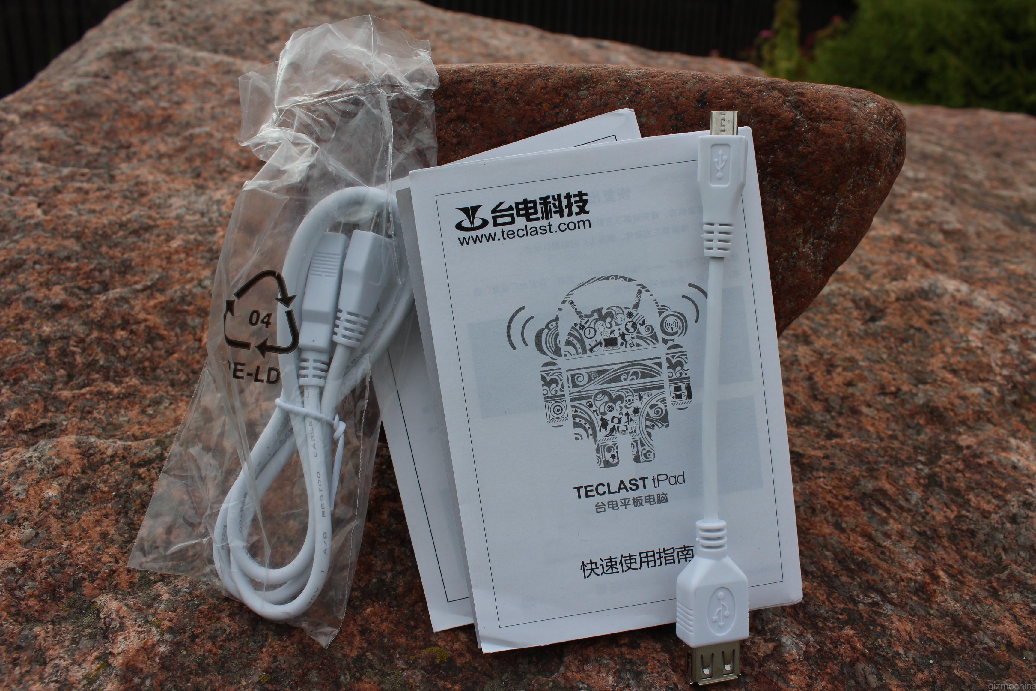 The Teclast X80HD tablet comes in quite a huge box that makes an impression that the tablet is bigger than 8″ if you haven’t opened the box yet. Once you do that you can find a regular micro USB cable, USB OTG cable for storage expansion (also, there is a microSD card slot for that) and some instruction manuals.