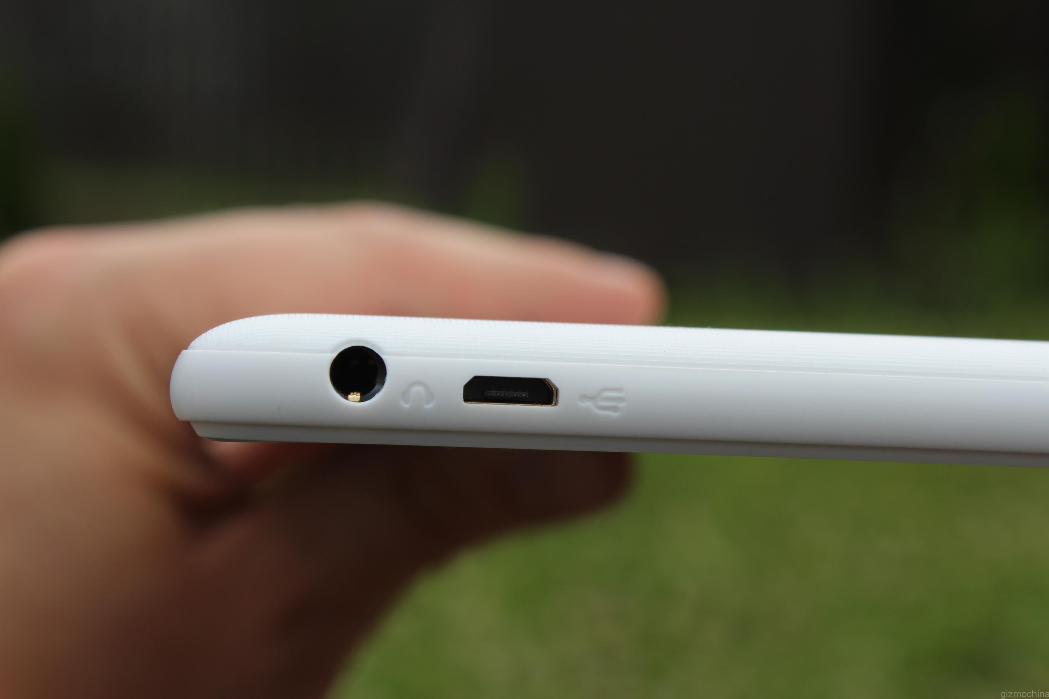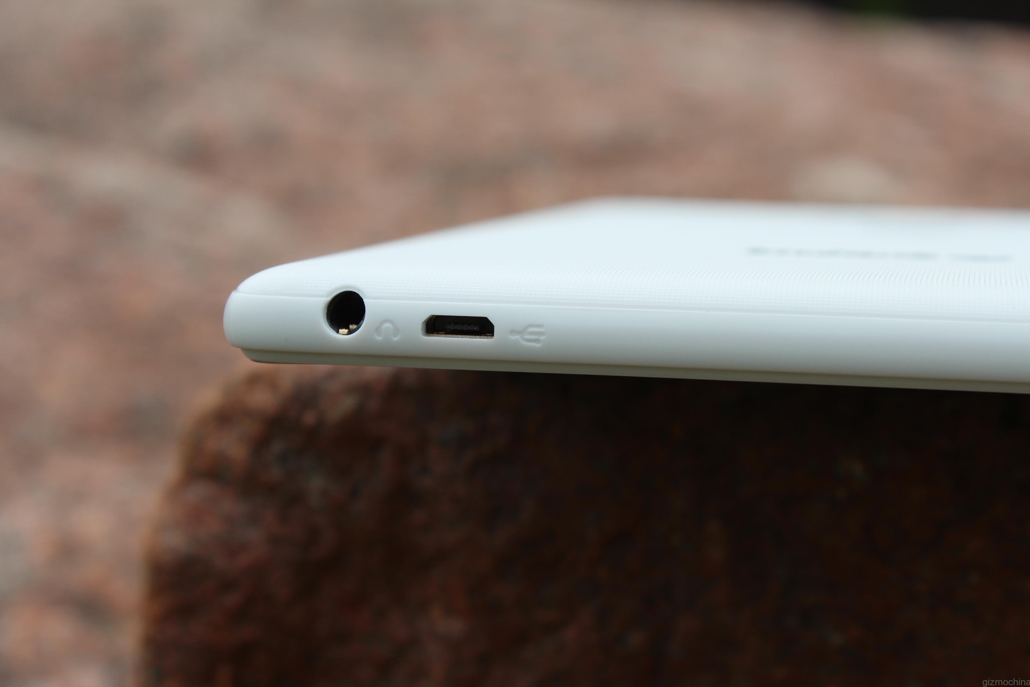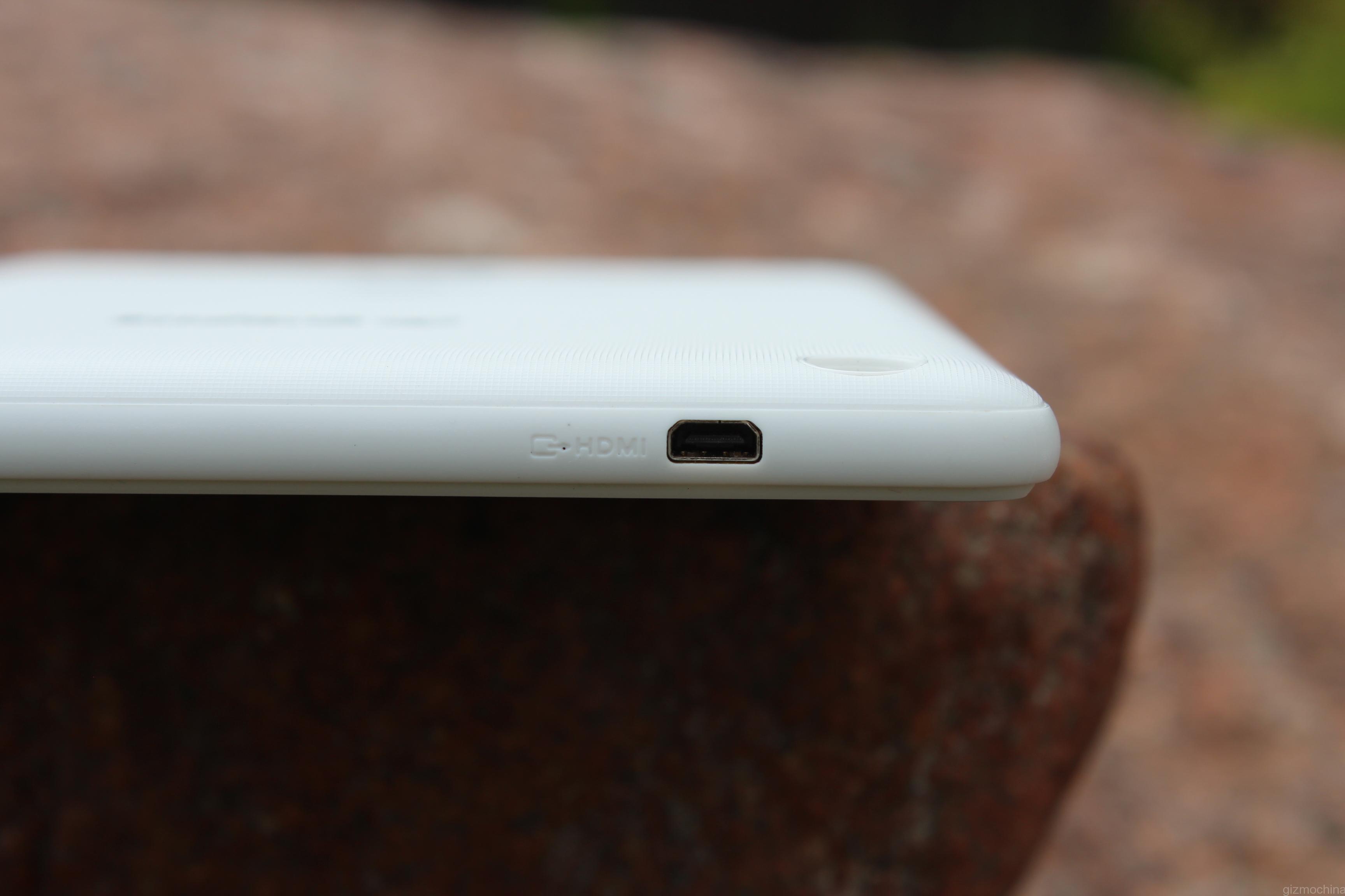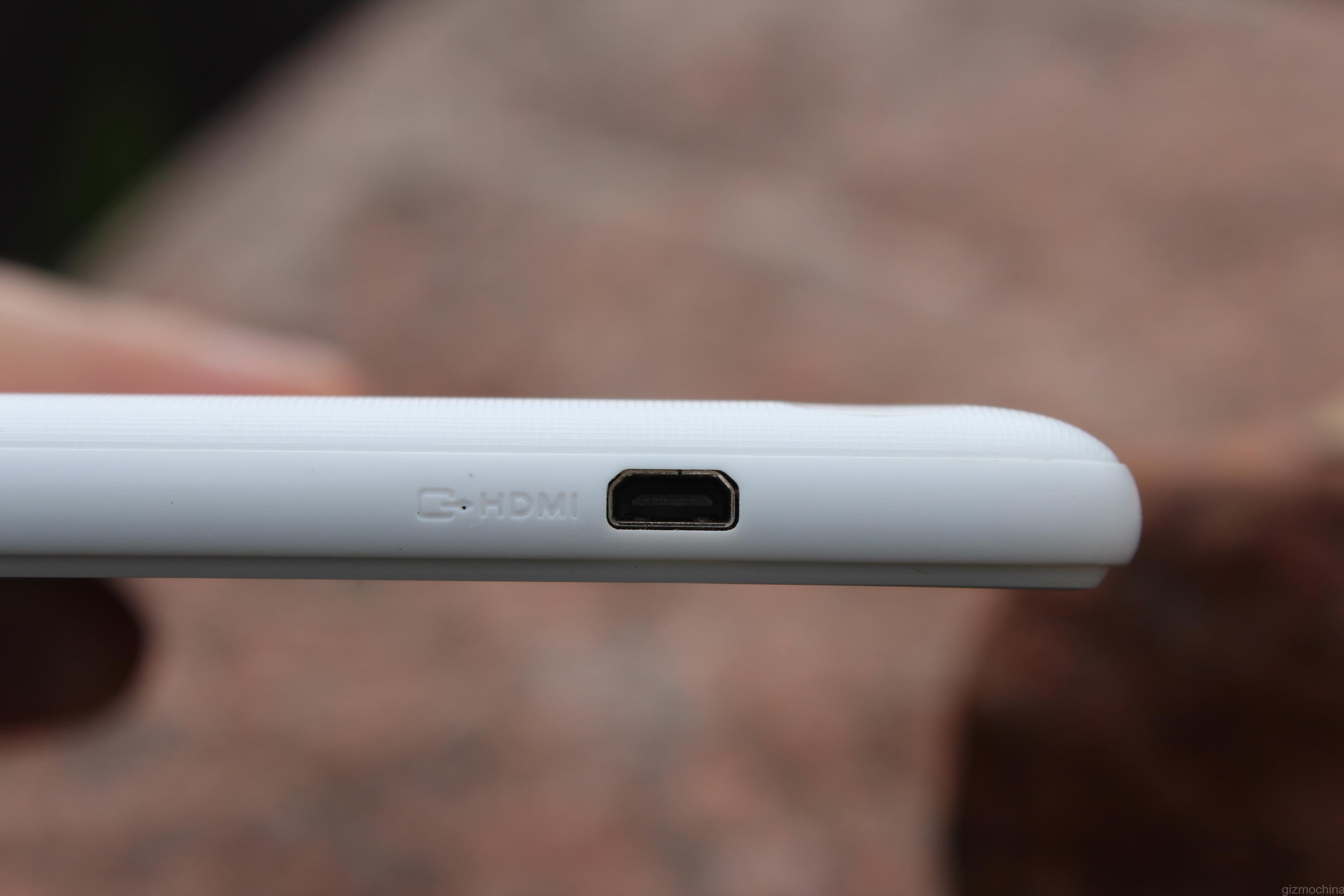 The top side is pretty busy as there are quite a few ports that include a headset jack, microUSB charging/syncing port and microHDMI port.