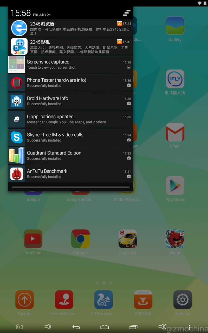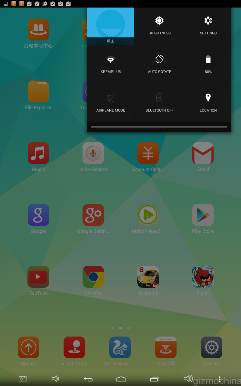 The tablet runs a dated Android 4.4 Kitkat OS. Overall, it is almost a stock Android experience but you are getting a bunch of Chinese bloatware out of the box. In addition, it would be naive to expect an upgrade to Lollipop anytime soon.