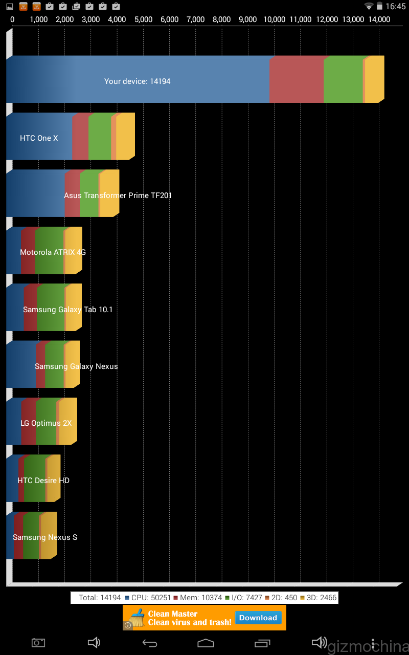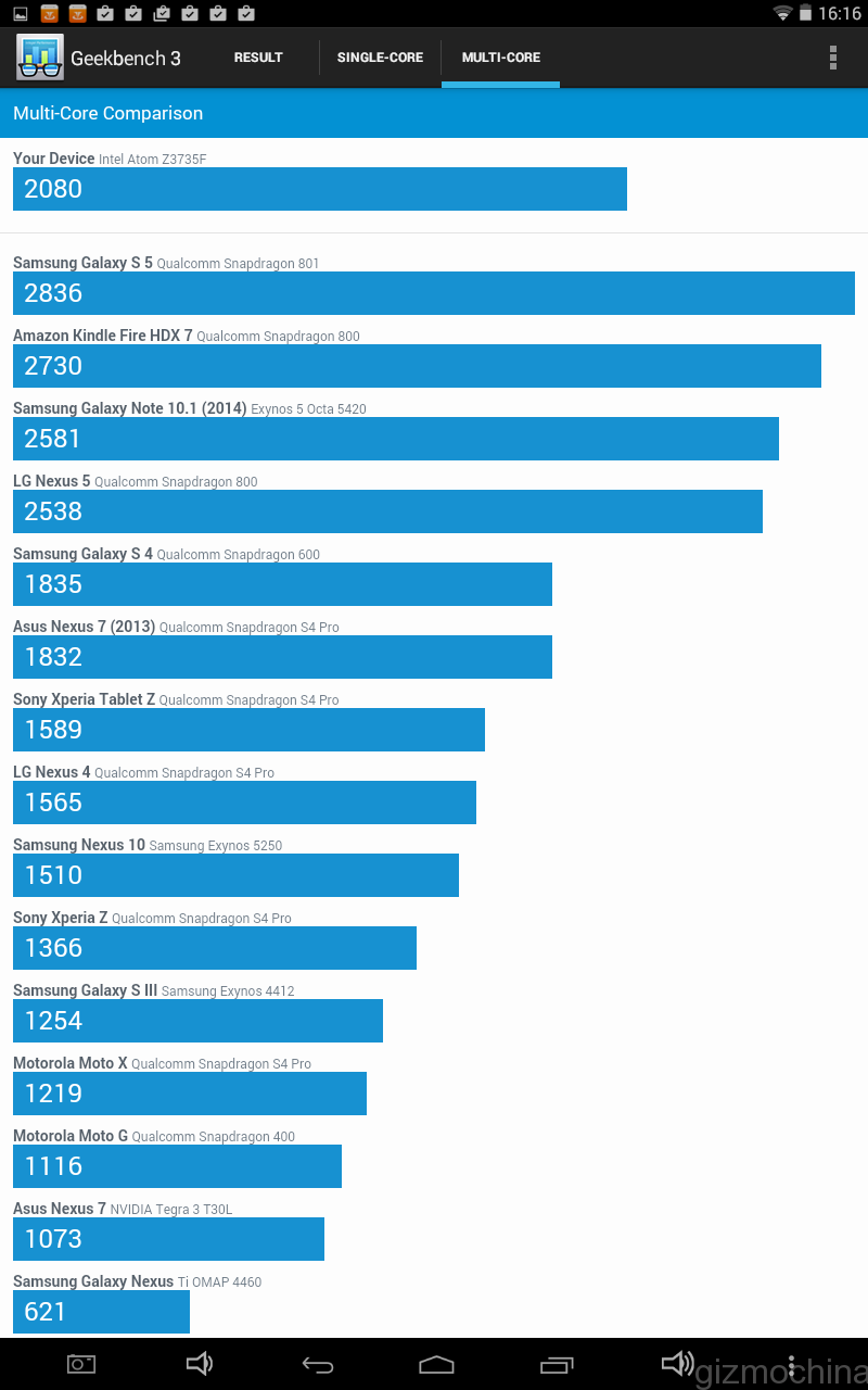 The Teclast tablet does a really impressive job in the benchmarks category for this price range. I guess that the Intel chip along with 2GB of RAM and Intel HD Graphics GPU is a great combo to assure that.