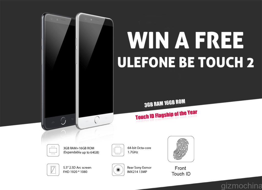 [embedyt]http://www.youtube.com/watch?v=e5sSUSnFKLQ[/embedyt]For your chance to WIN a FREE Ulefone Be Touch 2 head over to the GizmoChina Facebook page and perform the following: