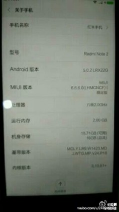 The leak also revealed the specs of the new handset, which once again confirms the presence of Helio X10 inside. So, you have an octa-core MT6795 64-bit chip clocked at 2GHz with 2GB of RAM and 16GB of storage. The user revealed that there will be a high-end version too with 3GB of RAM. There will be a 5.5-inch 1080p display, with 13MP + 5MP cameras and Android 5.0.2 Lollipop version with MIUI 6.6 on top. The user also revealed that the price should be in three digits (Yuan), which if true, means that the phone will retail for less than $156.