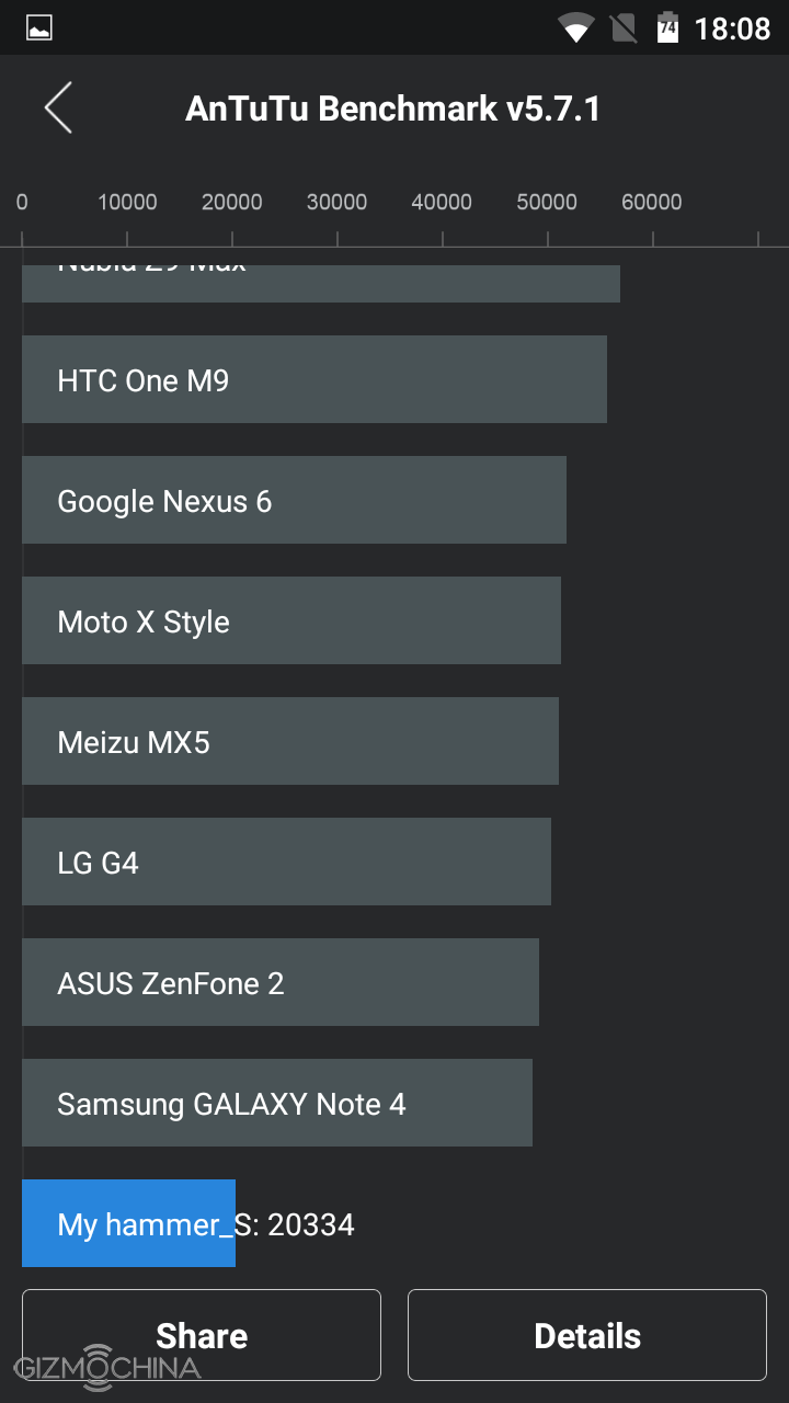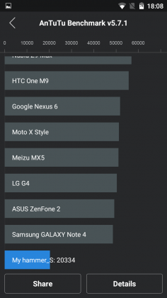The phone comes with 3200mAh removable battery, which performed really good in Geekbench 3 battery test. The Umi Hammer S managed to achieve almost 10 hours of screen-on time with the dim feature off. That’s really impressive. For example, I remember that the Letv Le 1 Pro could barely get over 4 hours.