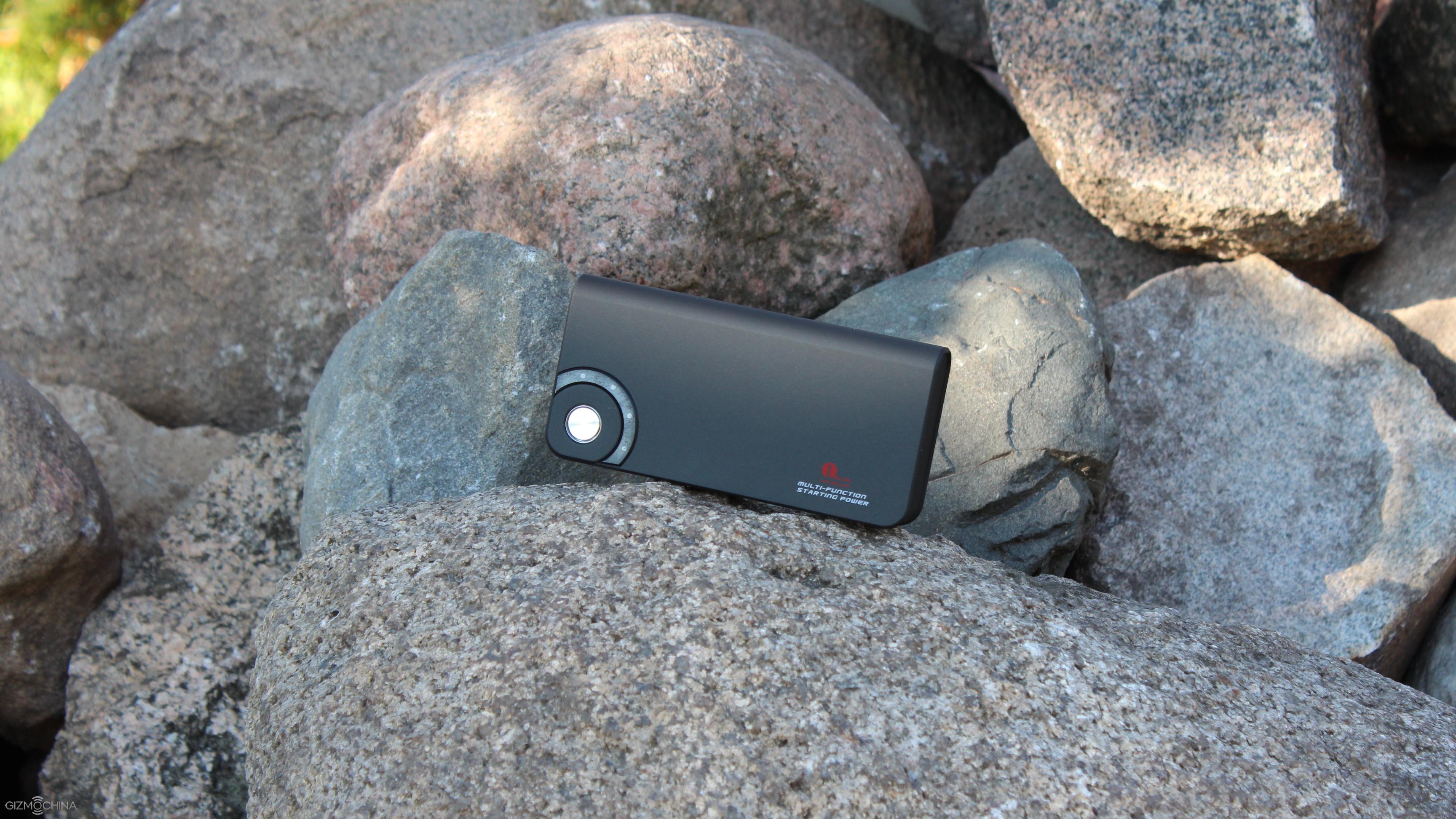 On the back there is a flashlight with 3 different flashing modes and it can be turned on by pressing and holding the power key.
