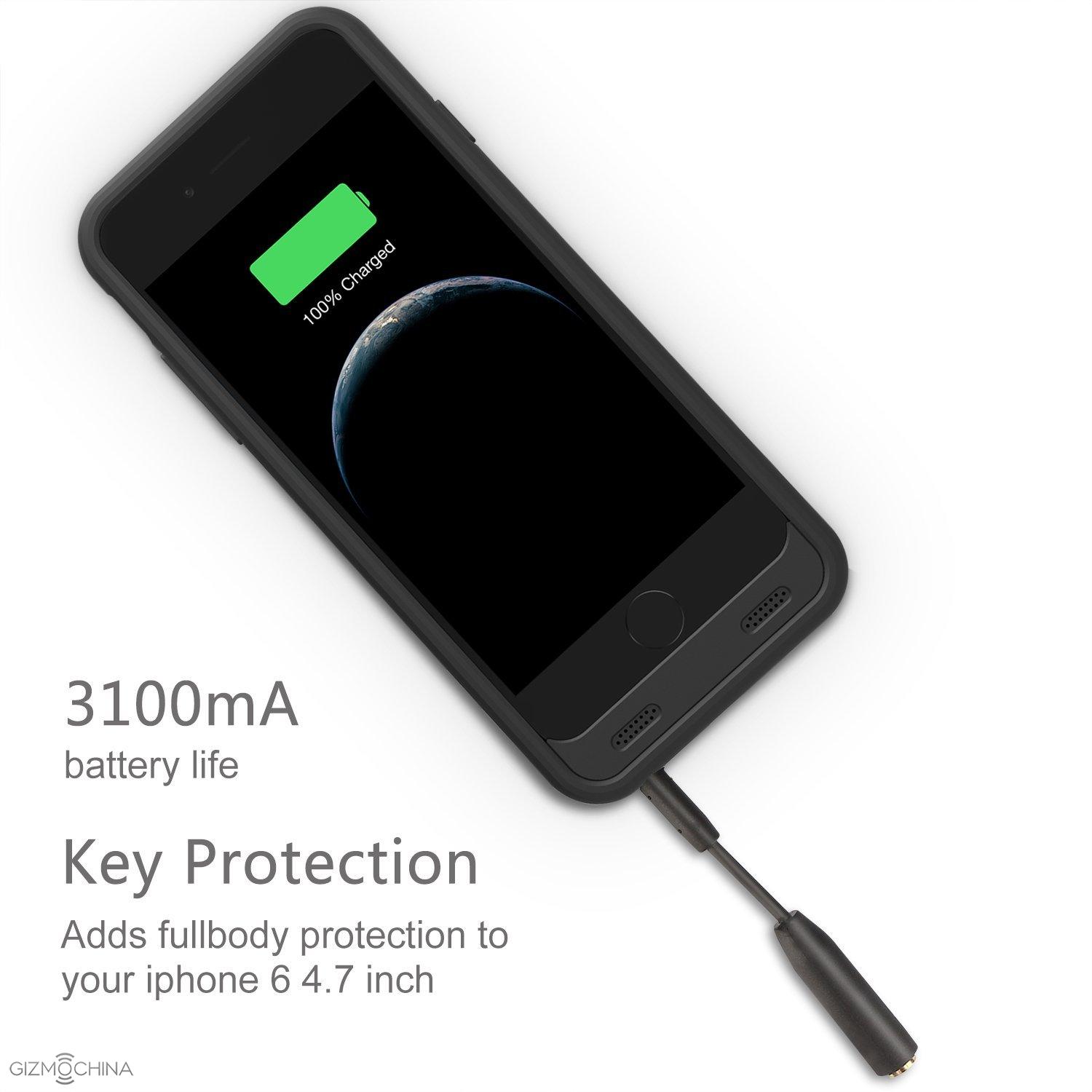 The solution made by 1byone is a case-powerbank, which are basically two products in a one package. It has a built it 3100mAh battery, which is said to add 100%+ extra battery life to your iPhone 6/6s or 14 + hours talk time or 10+ hours web browsing time.