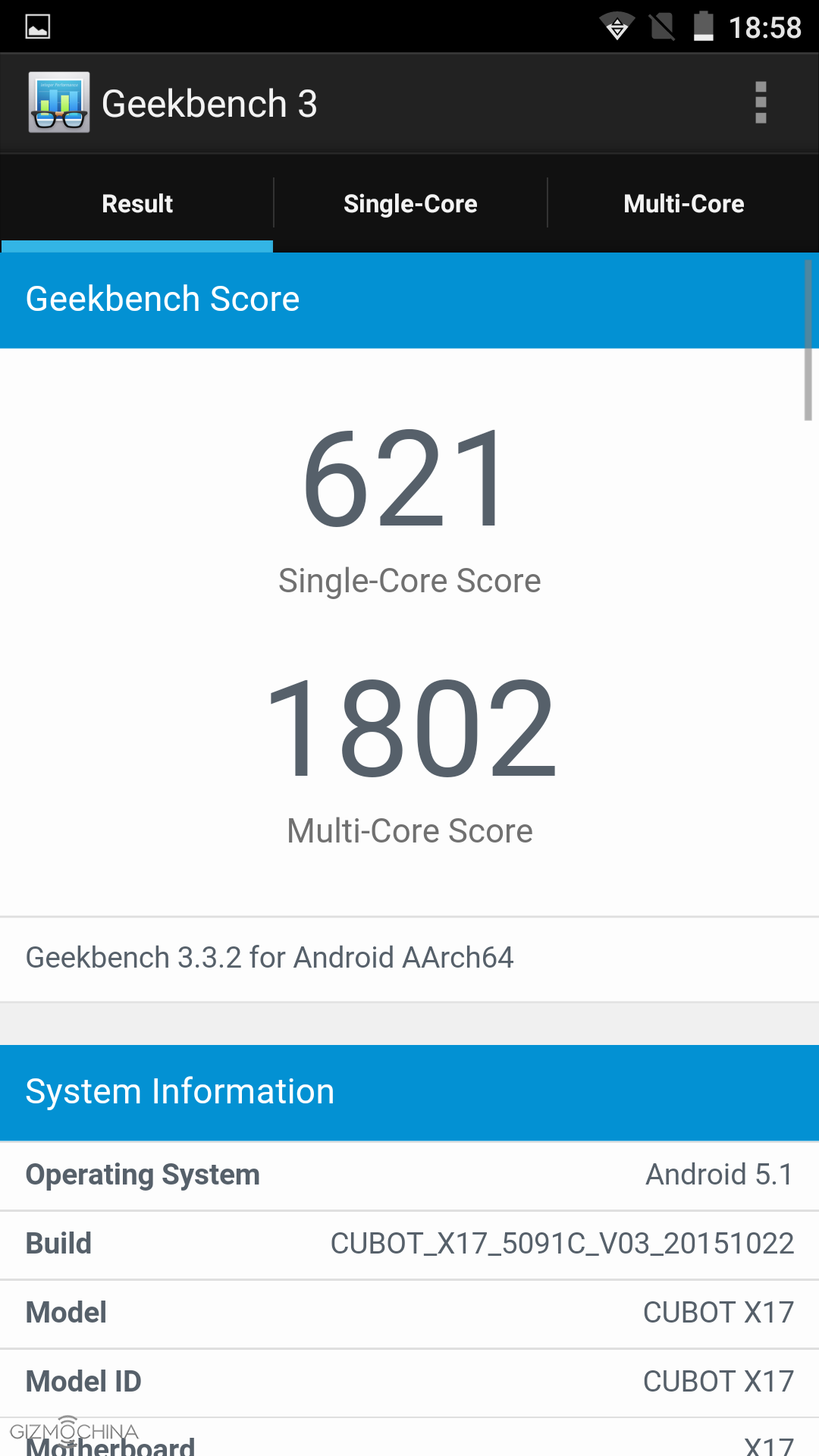 Cubot X17 has an MTK6735 chip with the clock speeds of 1.3GHz, generous 3GB of RAM and 16GB of expandable storage.