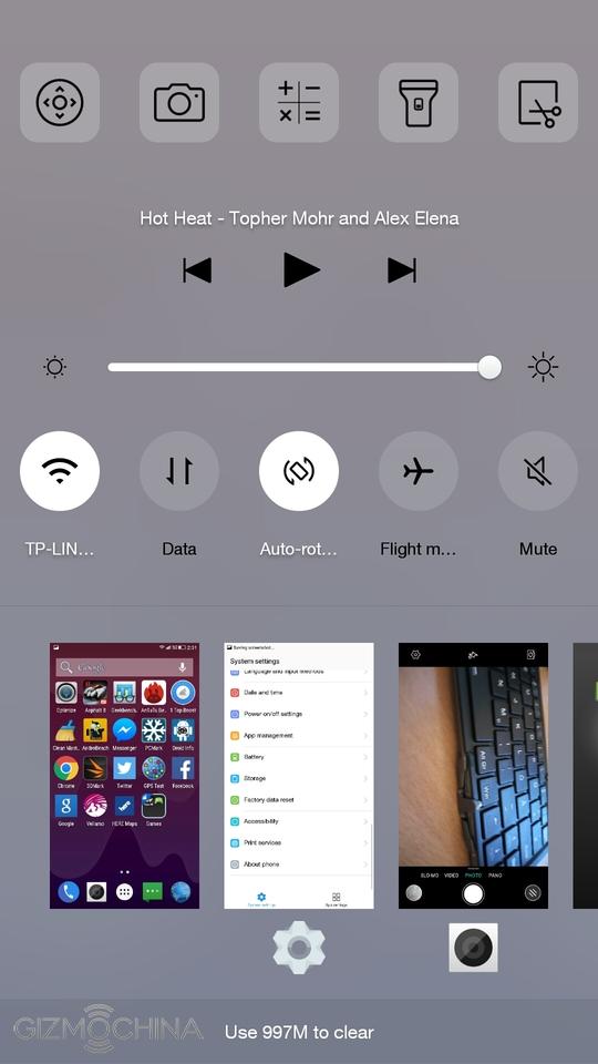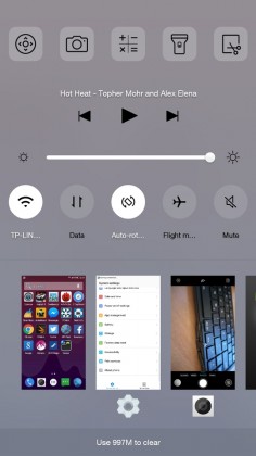 Pressing a left capacitive key triggers a window where you can access your recent apps or close them, quick settings menu, music player, shortcuts to some apps and so on.