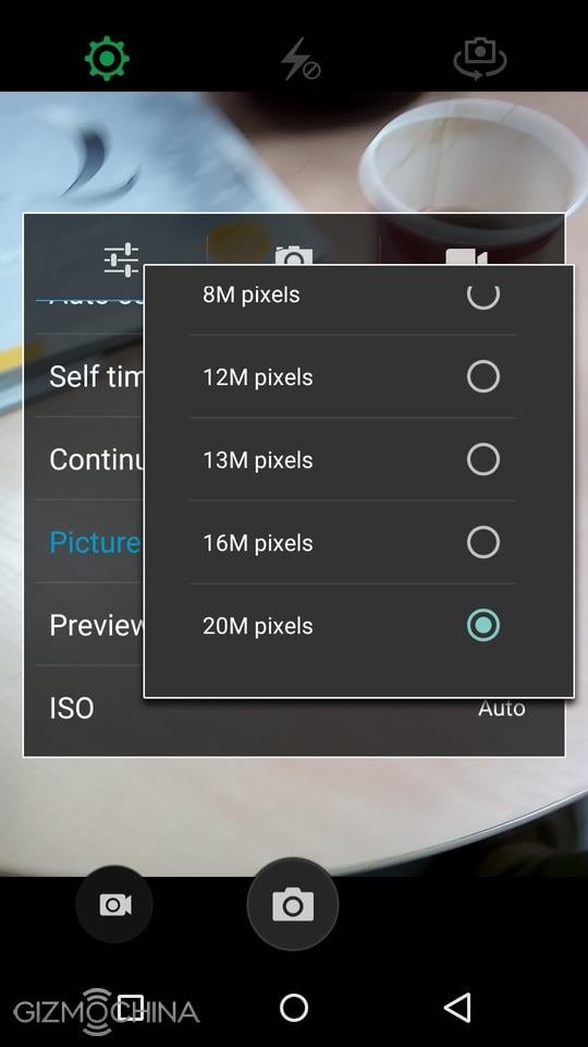 As far as camera, we have a pretty much stock looking Mediatek app. What’s funny is the fact that you can select the image size up to 20MP while the sensor itself is just 13MP.