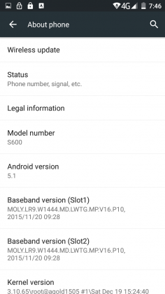 Cubot S600 is not going to be your next flagship device as far as sheer specs go. It has a quad-core MTK6735A chip with the clock speeds of up to 1.3GHz, 2GB of RAM and 16GB of expandable storage.