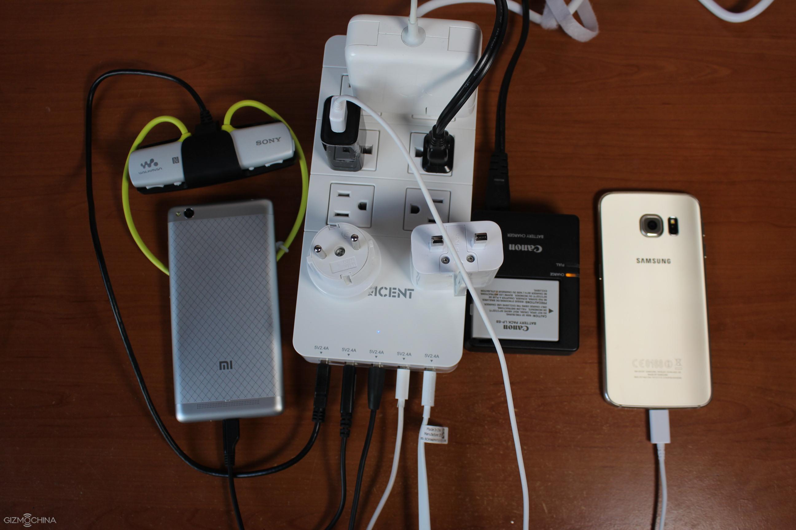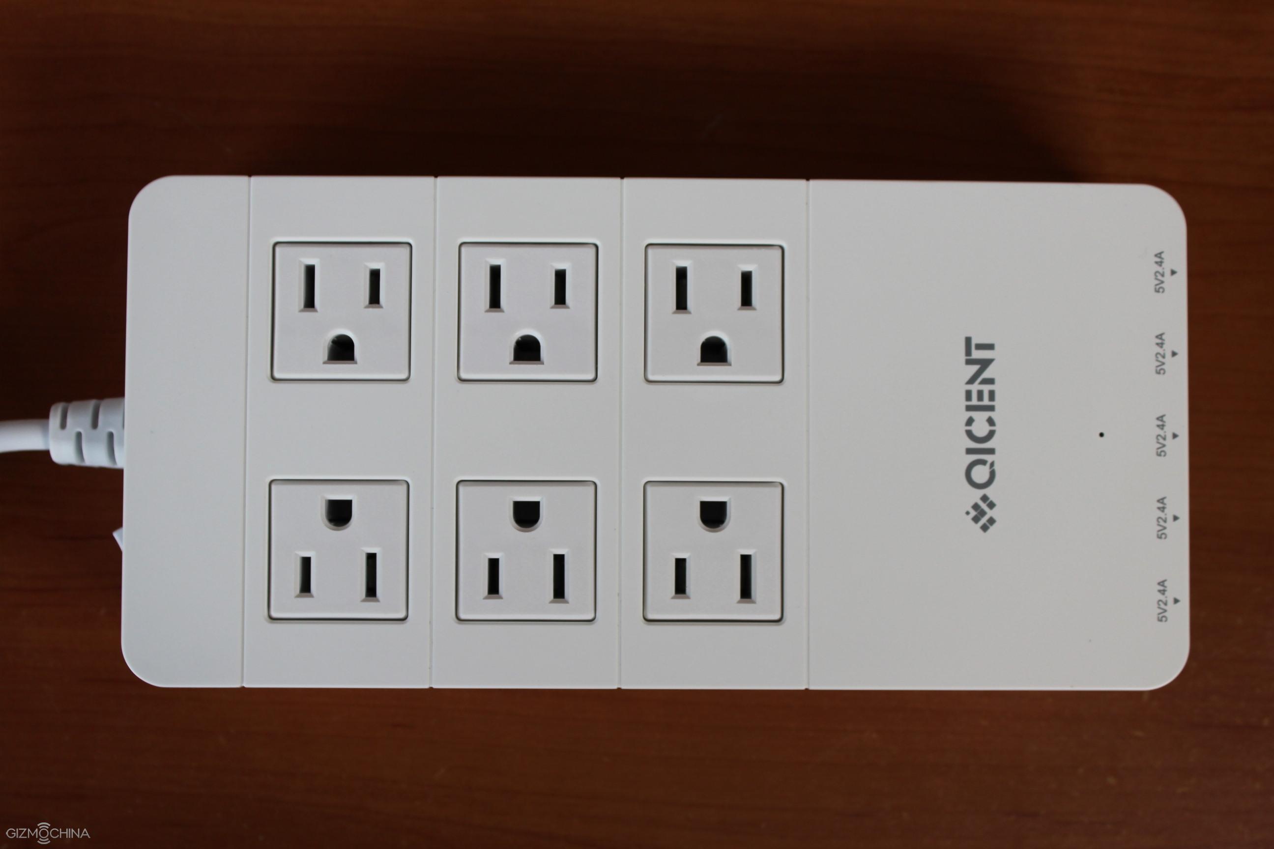 The Qicent power strip is made of quality plastic and it sports excellent build quality. Here in the top side we have 6 US/China type power outlets.