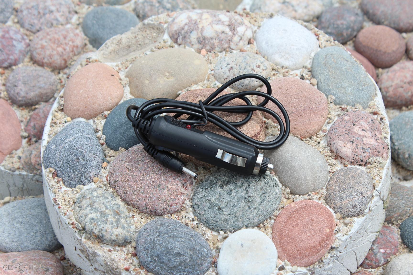 On the top side you can find a port to connect jump start cable and it is covered by a flap. Also, there is a proprietary charging port, which is I think a bit of a let down since you have to carry a supplied charger and not your regular micro USB charger. On the other hand, you are getting both a wall and car charger with to make sure it is powered up all the time. But you may not even need these chargers at all and I will explain why a bit later in this review.