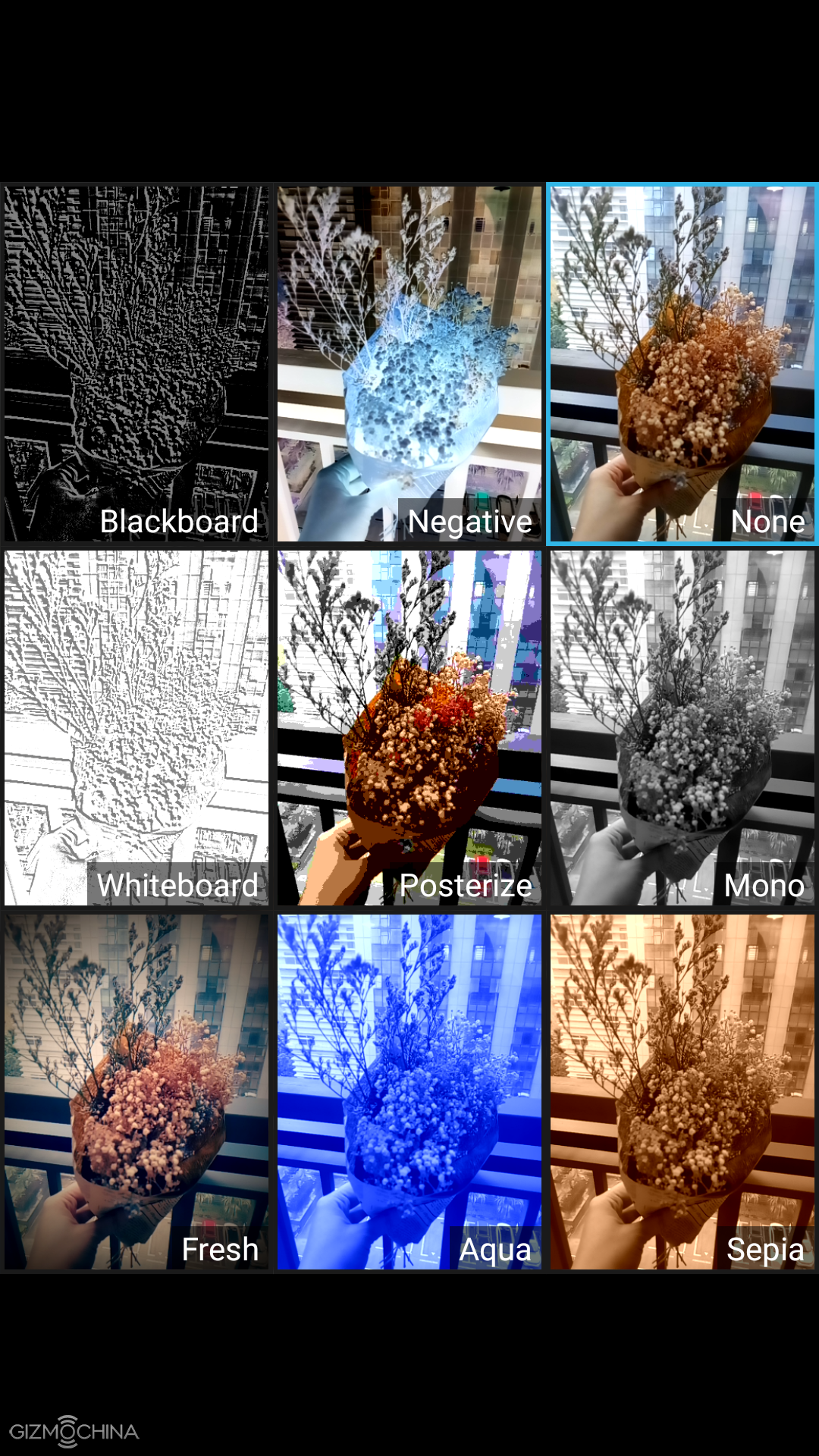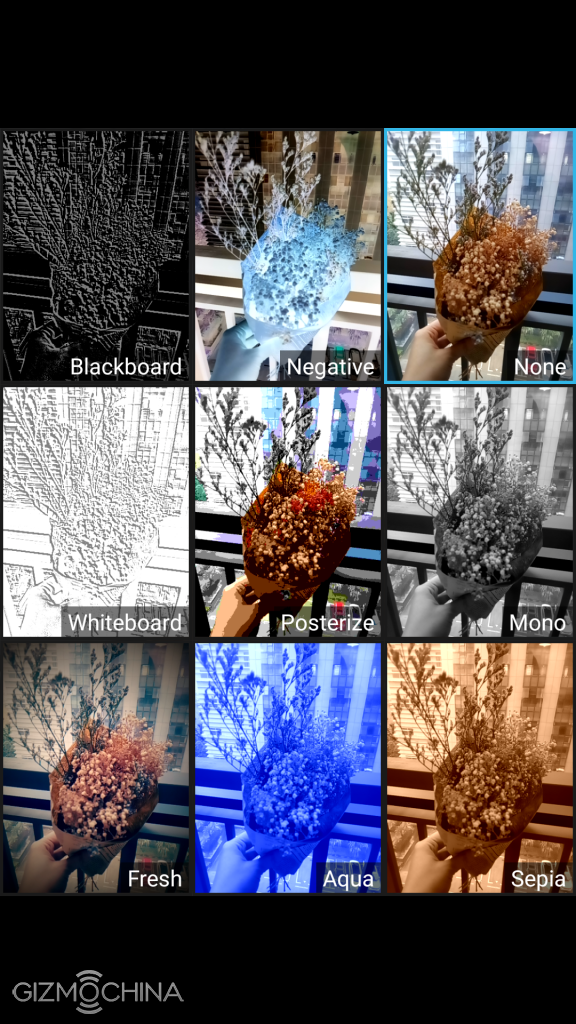 UMi has also revealed some details on the camera UI of the device. The design is simple with 7 panes, the default one featuring a virtual shutter, flash trigger, HDR, Auto capture with gesture “Yeah” and front camera key. On top of the interface, there is the Panorama mode, picture in picture mode and the default mode. Swiping to the right brings you the choice of 9 filters with live preview. The phone can also take 1080p videos at 30fps.