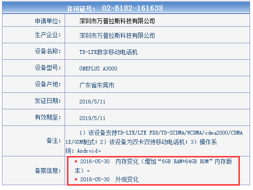 OnePlus 3 specs have almost been confirmed thanks to the certifications in China as well as US. However, up till now, we only saw a 4GB RAM version of the phone. Now, the 6GB OnePlus 3 version has finally made it to the TENAA certification website, which confirms the existence of this large RAM model. We had exclusively reported a while back that the phone will come in two variants, 4GB RAM + 32GB and 6GB RAM + 64GB, so this news shouldn’t come as a surprise.