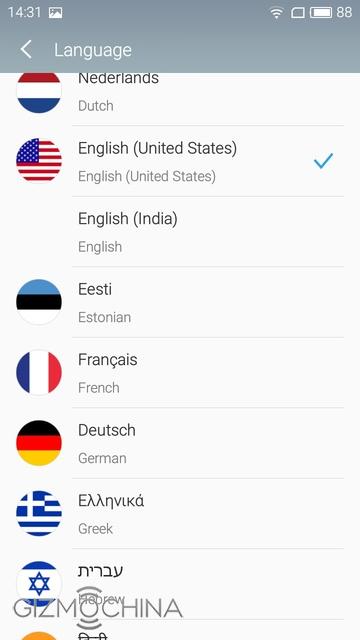My Meizu M3 unit has FlyMe OS 5.1, which is built on top of Android 5.1. My review unit has a fully de-bloated ROM with multi-languages and Google Play services pre-installed.