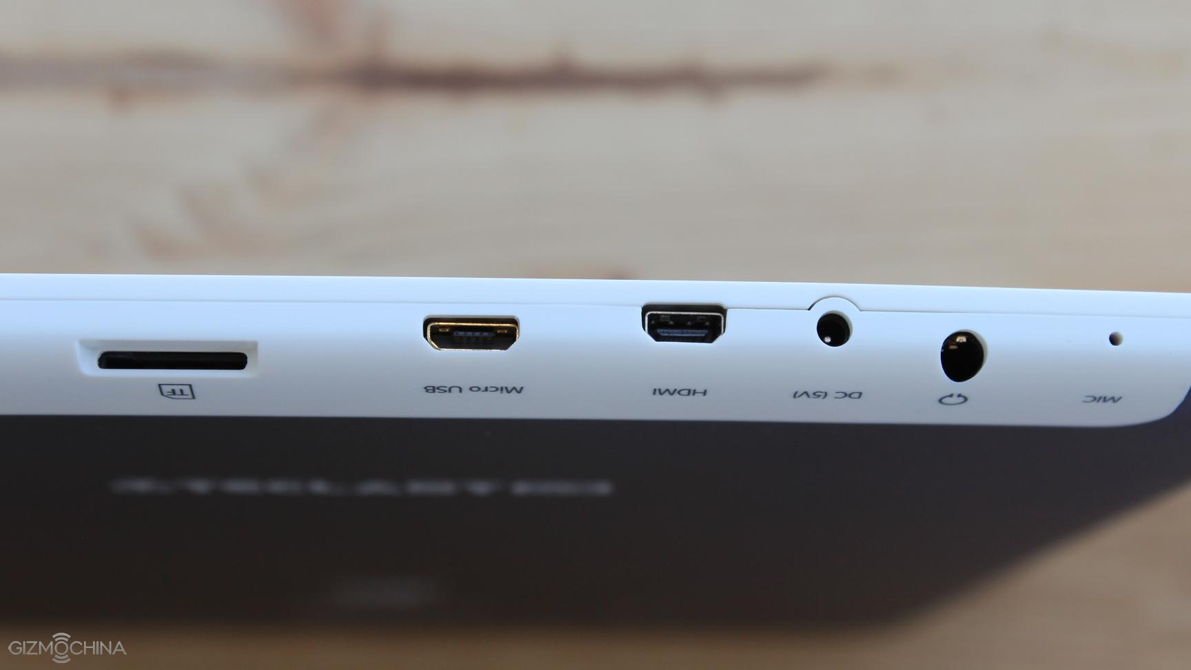 On the top, there are all the ports that include a headset jack, DC power input, HDMI and micro USB ports, and the microSD card slot.
