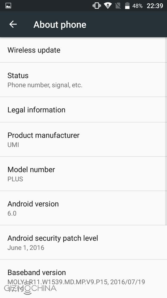 The Umi Plus ships with the pretty much stock-looking Android 6.0.